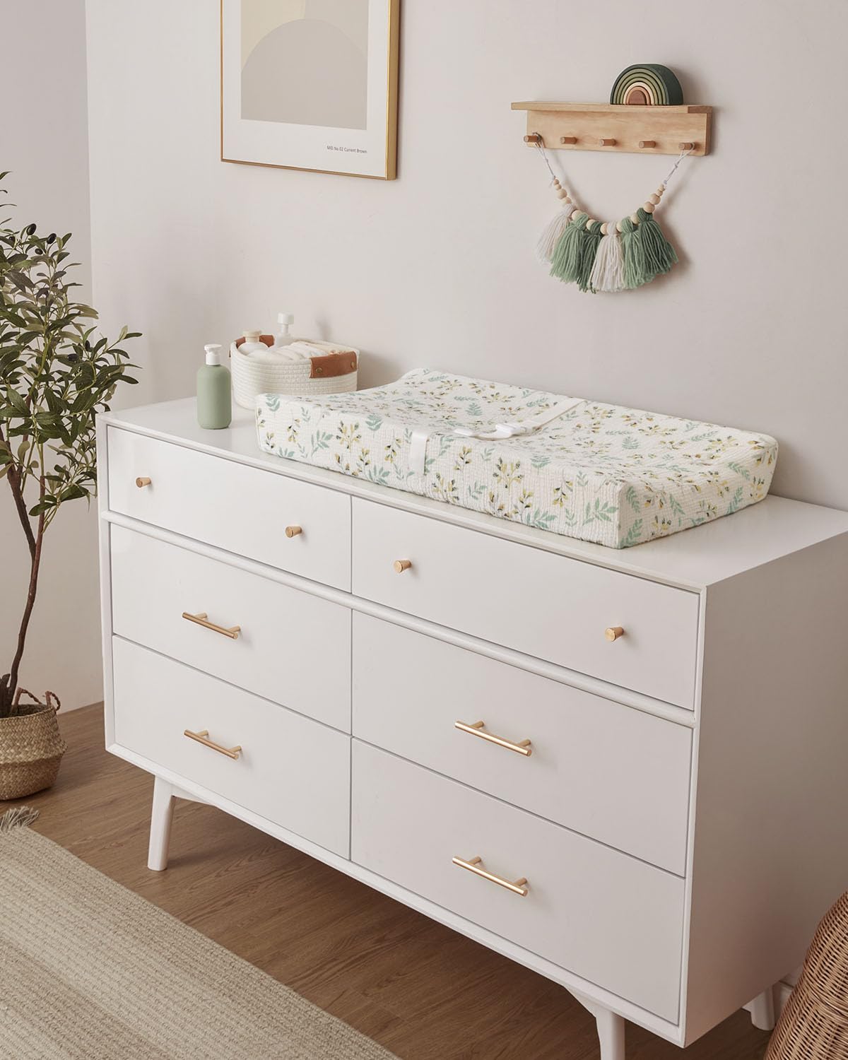 Blissful Diary Muslin Baby Changing Pad with Waterproof Lining Foam, Diaper Changing Table Pad with Cover for Dressers (Botanical Leaf, Rectangular)