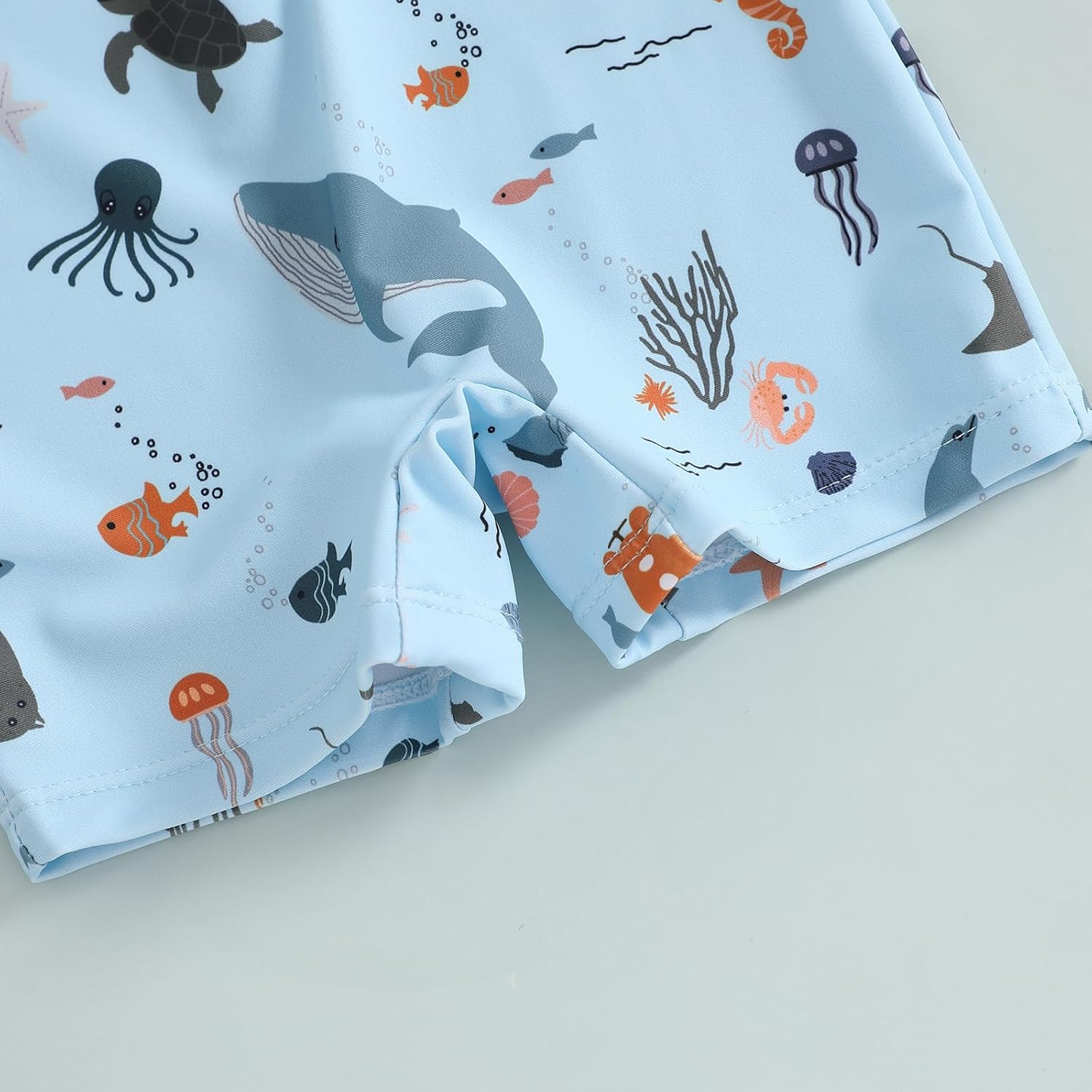 • Design: Toddler bathing suit boy, infant long sleeve swimsuit boy, round neck, back/front zipper closure for easy on and off, newborn swimsuit boy, dinosaur/marine animal print, super cute and lovely, your little boy will stand out in the crowd