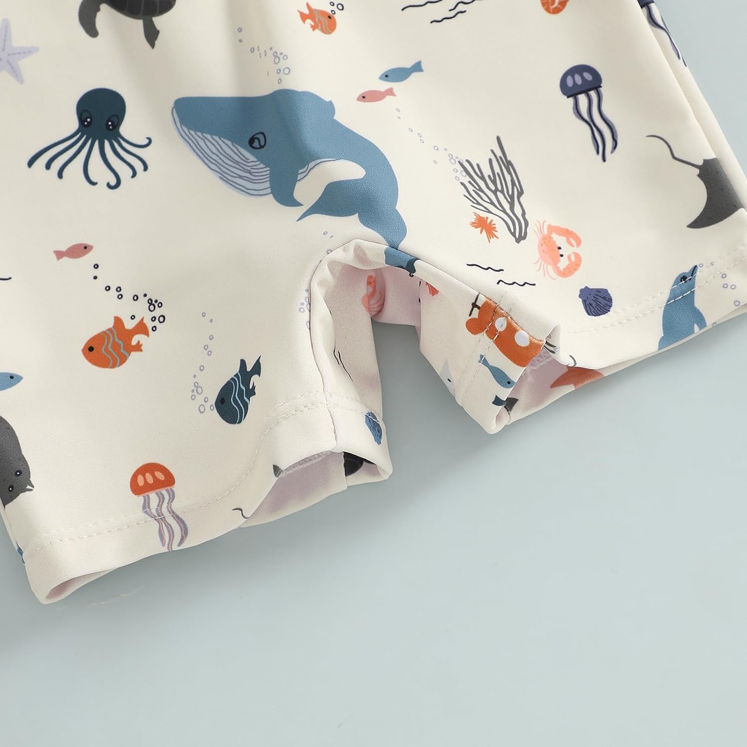 • Design: Toddler bathing suit boy, infant long sleeve swimsuit boy, round neck, back/front zipper closure for easy on and off, newborn swimsuit boy, dinosaur/marine animal print, super cute and lovely, your little boy will stand out in the crowd
