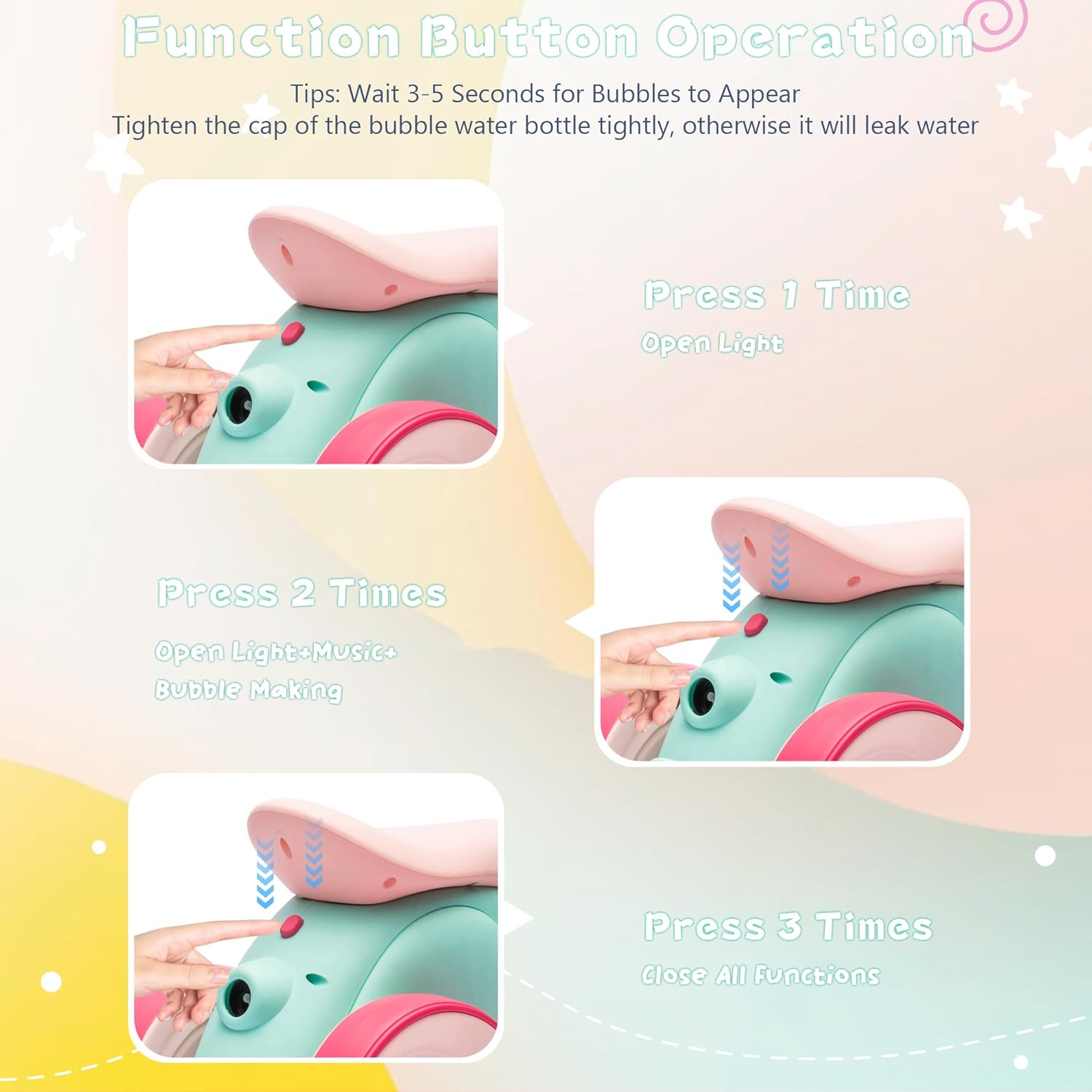 • Multiple pleasures: 1 car with 4 modes for multiple uses value for money 1. Sliding walking mode 2. Electric self driving mode 3. Remote brake mode 4. Bubble blowing mode
