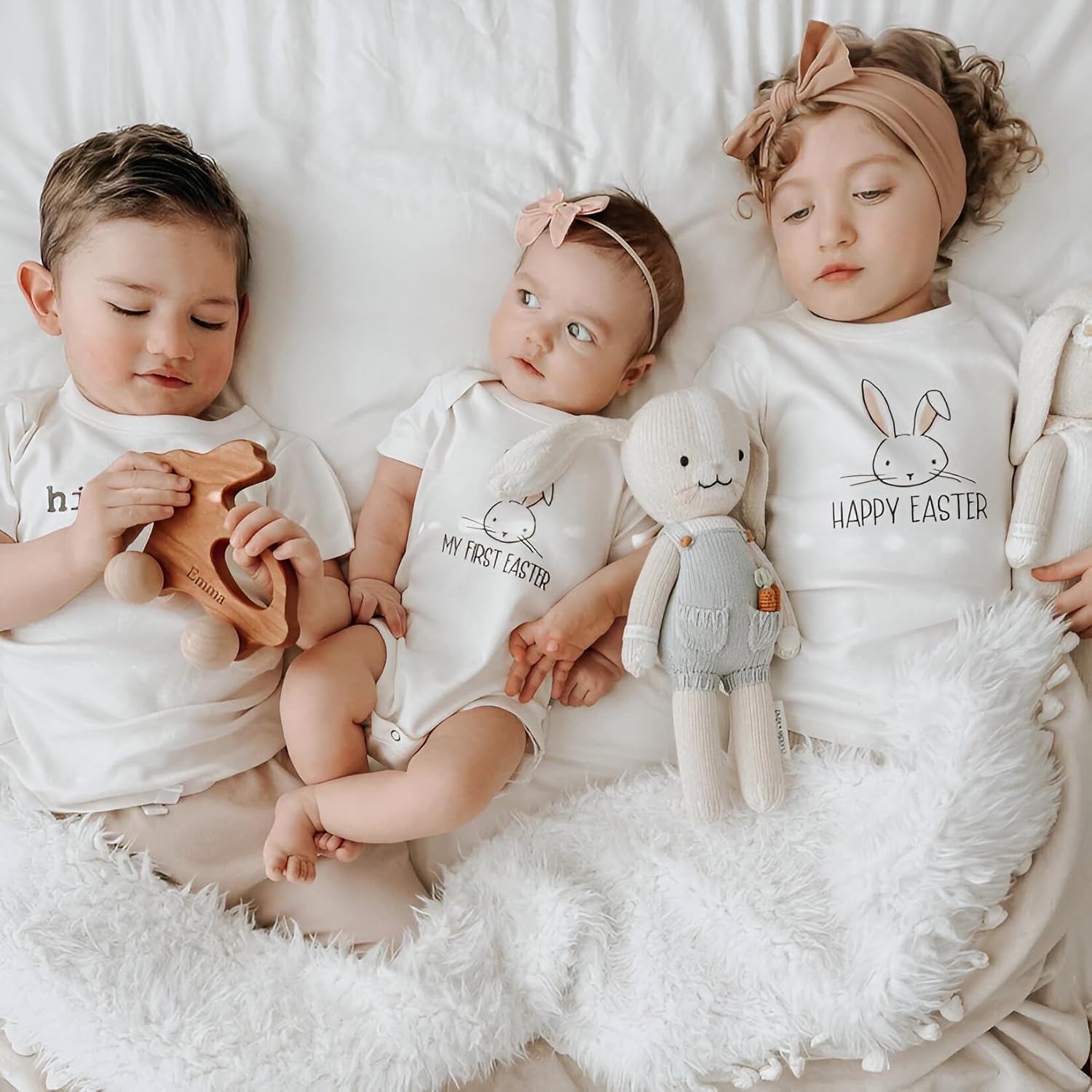 • Design & Color: Features a 'My First Easter' printed design on a round neck, sleeveless leotard, perfect for spring and Easter celebrations