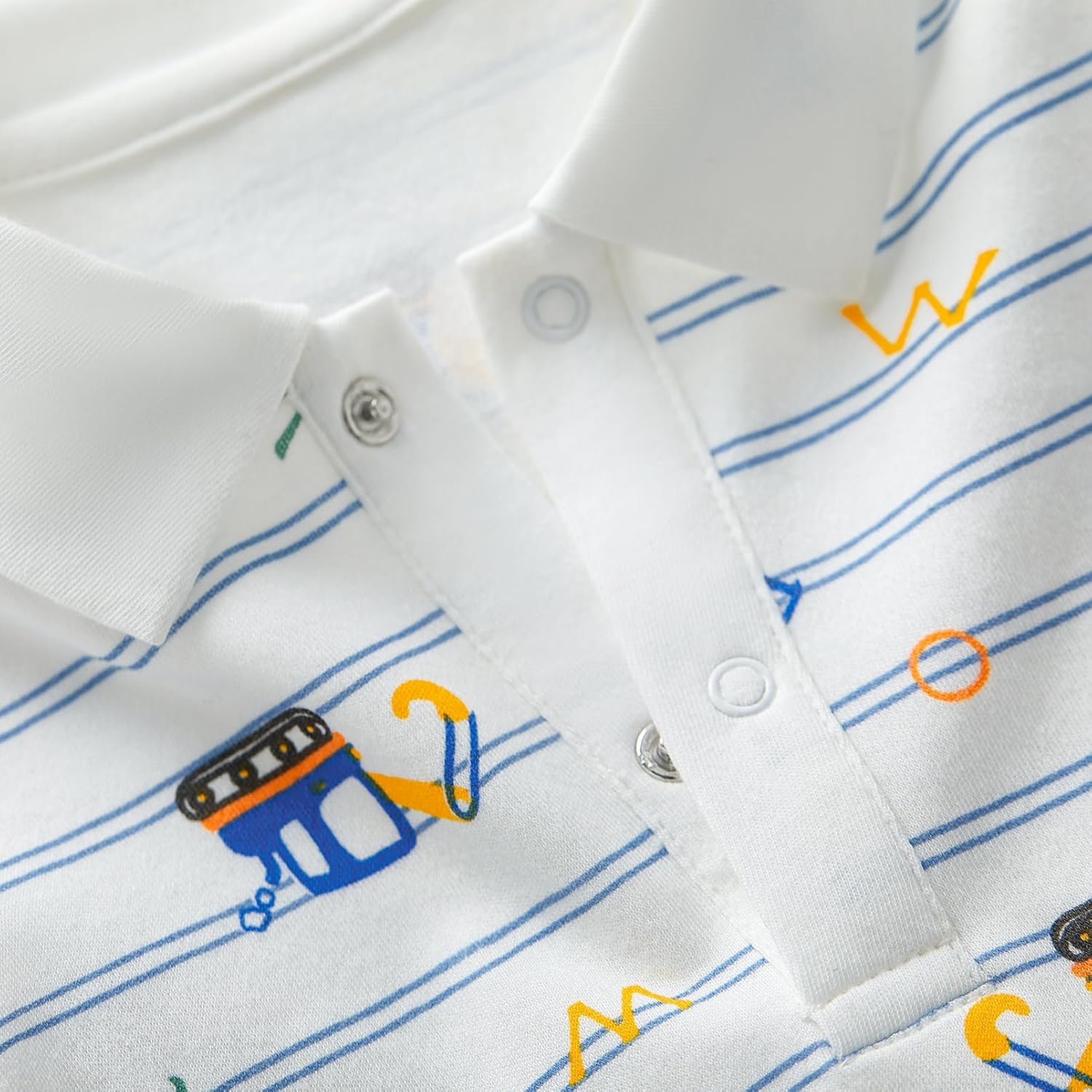 • FEATURES - Striped excavator prints, polo collar, short sleeve, gentleman style, with these designs, your baby will get tons of compliments on it