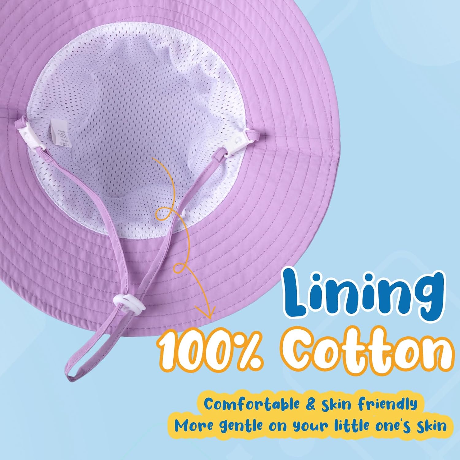 • PREMIUM MATERIAL: The baby sun hat is made of high quality polyester fabric, soft,quick-drying,skin friendly and breathable. The toddler sun hat with UPF 50+ UV sun protection keeps baby head cool and comfortable in hot summer.The baby bucket hat is convenient for your child to wash frequently and to match for different clothes