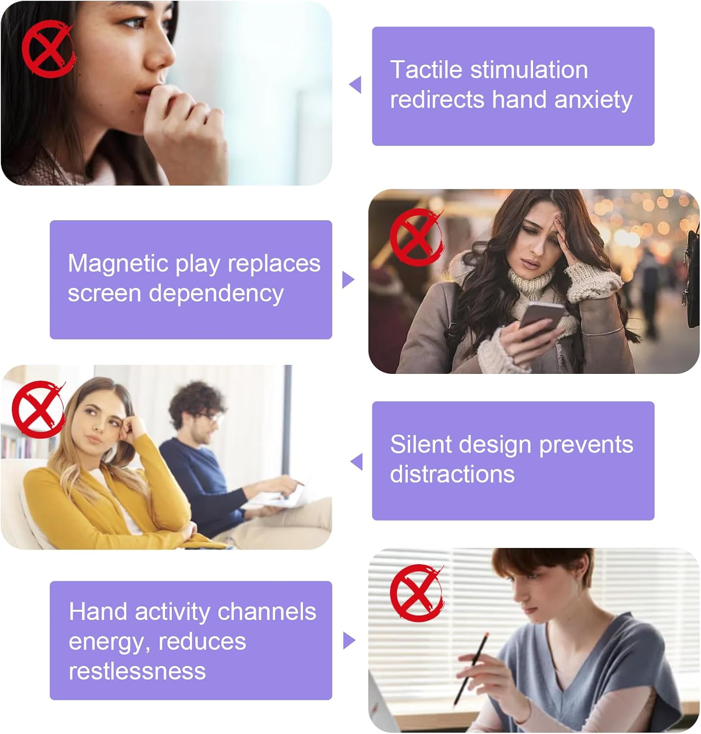 • Silent Stress Relief & Focus Enhancement: Soft silicone-coated magnetic fidget balls provide quiet, distraction-free play to reduce anxiety, improve concentration, and calm nerves—perfect for offices, meetings, or study sessions.