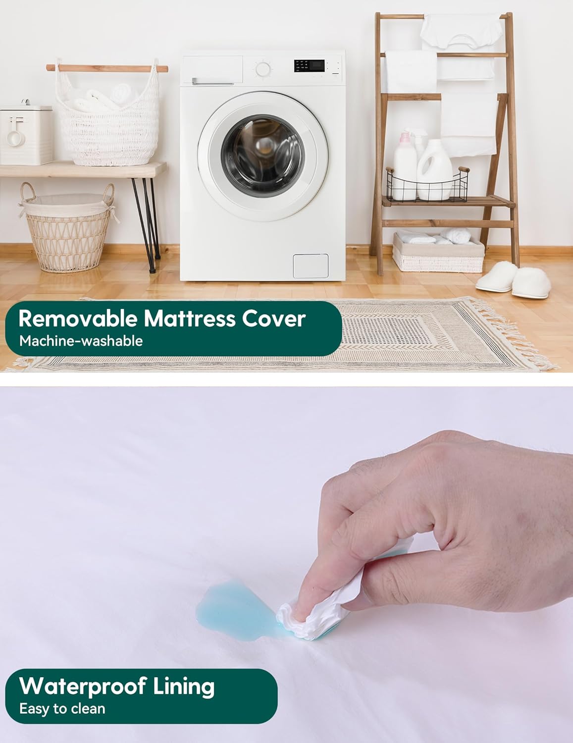 • 【Easy to Clean】The zipper mattress cover is easily removable and machine washable, while the waterproof inner lining makes cleaning up any messes or accidents a breeze