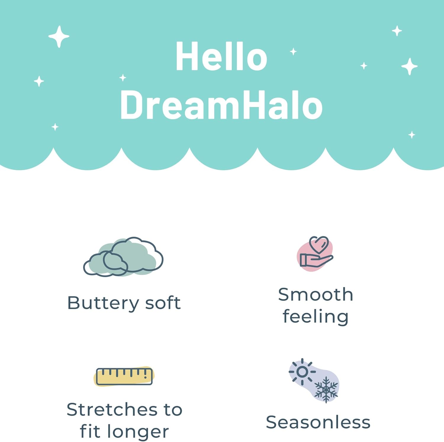 • Design: DreamHalo onepiece jumpsuit features a U-shaped 2-way YKK zipper, making it easy to dress and undress your little one. Thoughtful mittens add extra practicality. Each print is one-of-a-kind which is crafted with care and creativity by our professional design team, ensuring your little ones lounge in style. Tagless label is designed for your baby's sensitive skin.