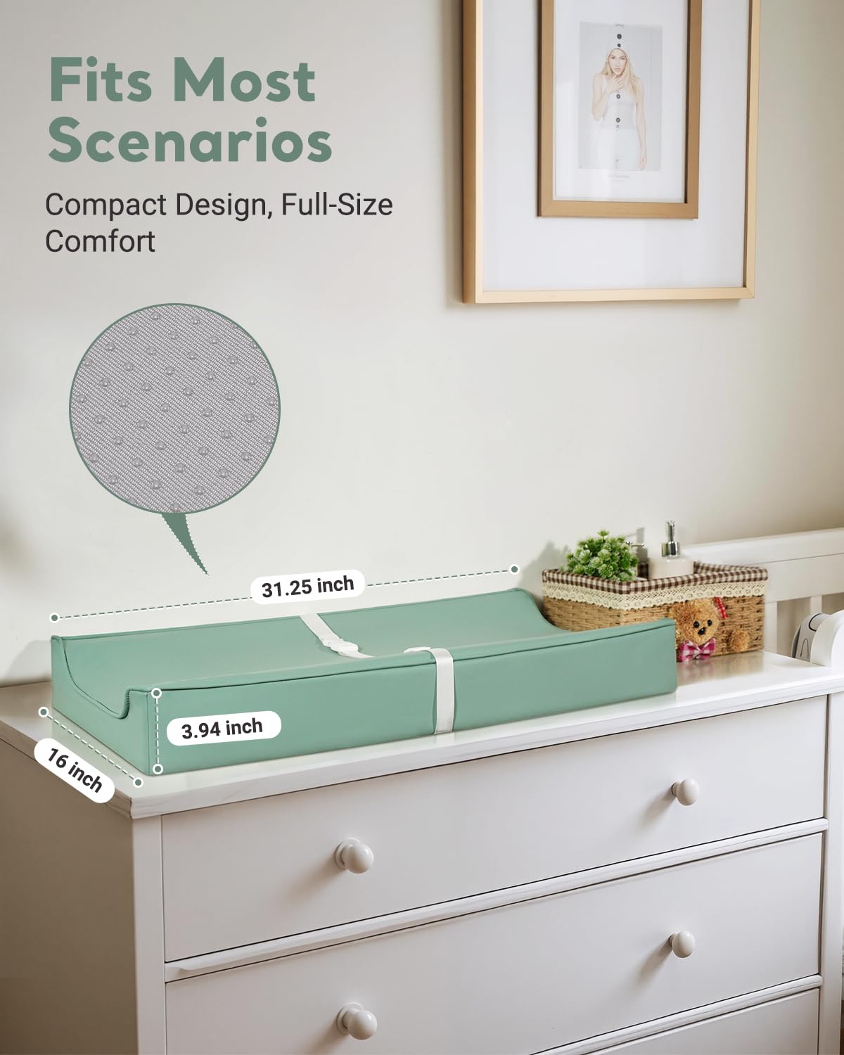 • Ultra-Thick & Non-Slip Safety: 4-inch extra-thick foam provides cushioning comfort, while the non-slip back keeps the pad securely in place on any surface—ideal for dressers, cribs, or travel