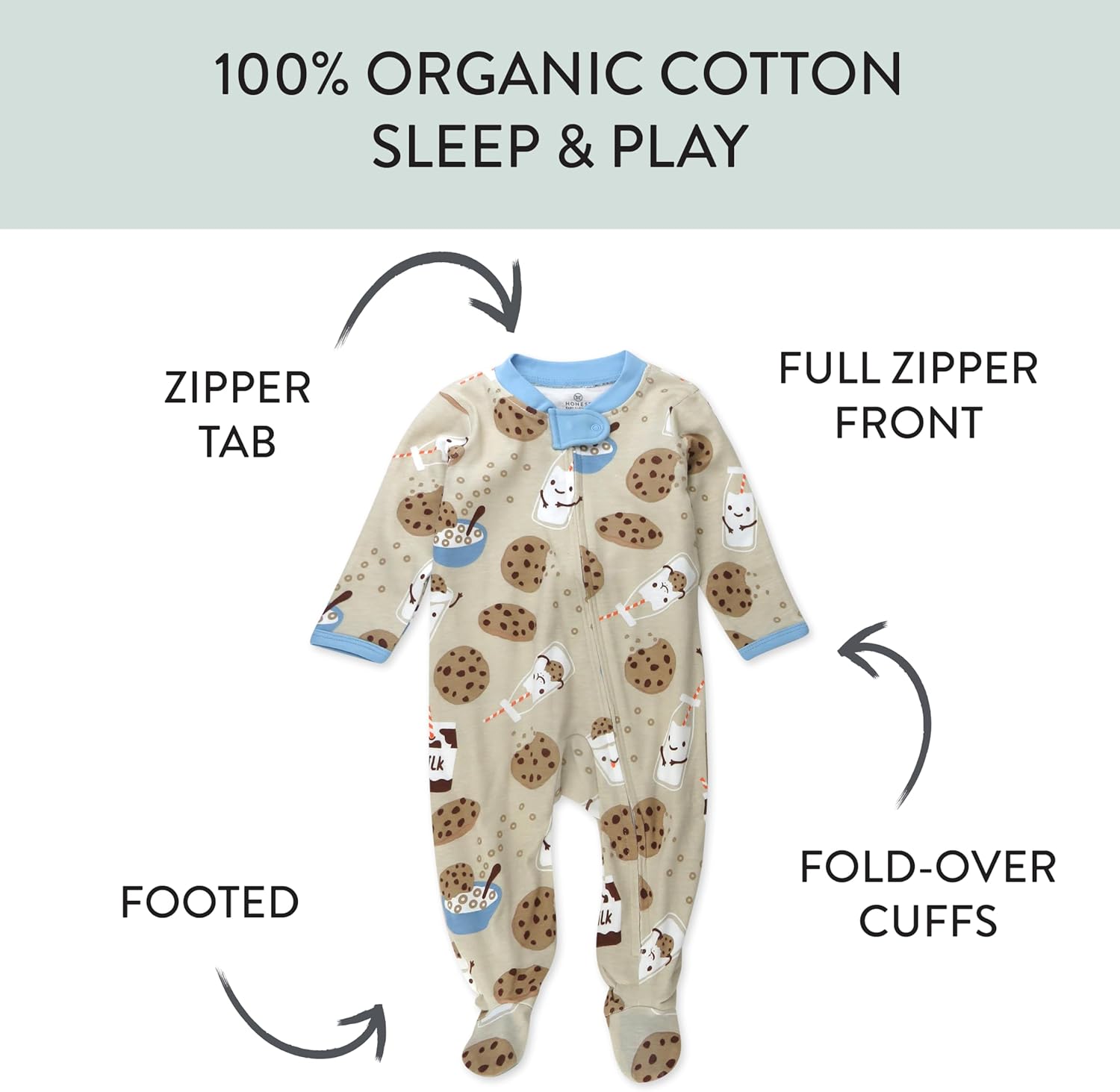 HonestBaby Baby Sleep N' Play One-Piece Zip-Front Footed Organic Cotton Pajama Sleeper