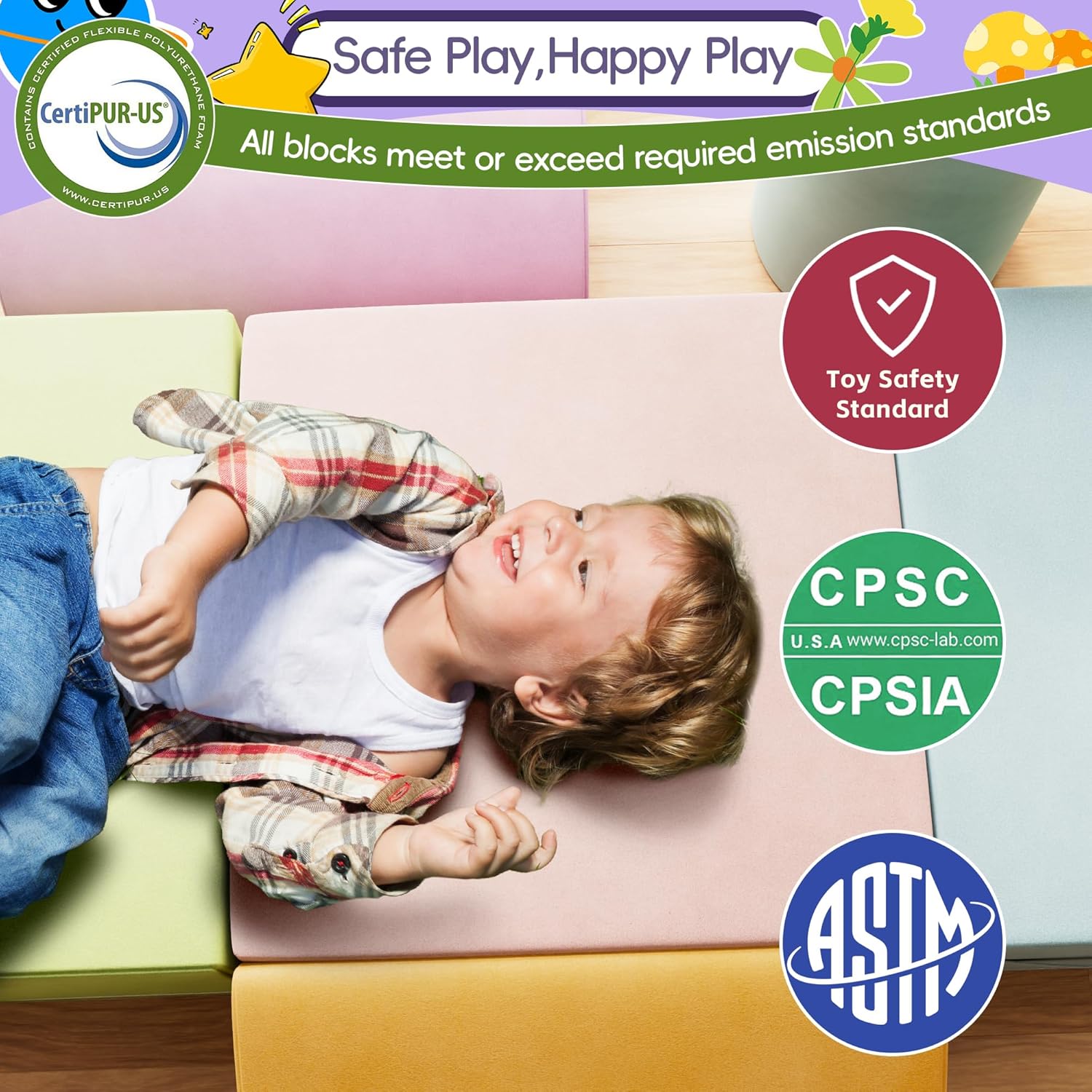 • Safe and Guaranteed: The kids climbing blocks are CPSIA & CPC certified, non-toxic, and tasteless fabric with ASTM approved. Each block is designed with hidden zippers to prevent scratches on delicate skin, and the structure is soft with no sharp edges, reducing the risk of bumps and bruises.