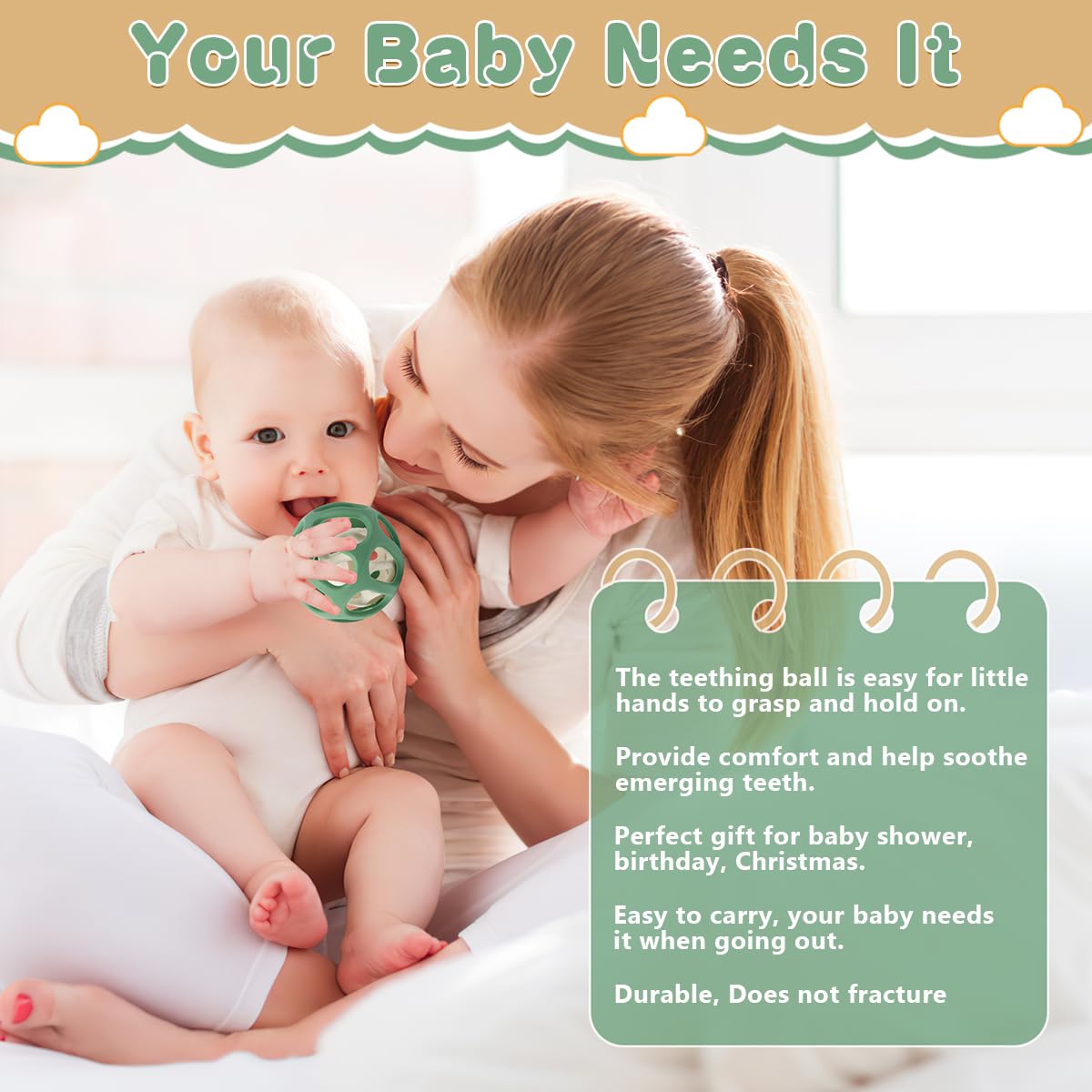 - 【Teething Relief】The soft teething toy eases the discomfort of teething and helps your baby get through the painful teething time. Lightweight and compact, the baby teether ball is easy to fit into a diaper bag.