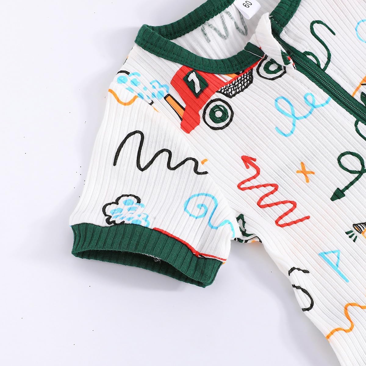 Bafeicao Unisex Baby Boy Girl 2 Pack Rompers Short Sleeve 2 Way Zipper One Piece Jumpsuits Clothes Sets