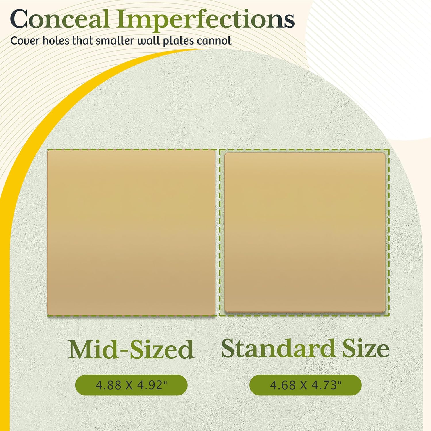 • 𝐌𝐢𝐝𝐬𝐢𝐳𝐞 𝐃𝐢𝐦𝐞𝐧𝐬𝐢𝐨𝐧𝐬 - Easy replacement of any two gang wall plate of the same configuration; Midsize dimensions: 4.88" H x 4.92" L; perfect for covering up damage that may have happened during installation