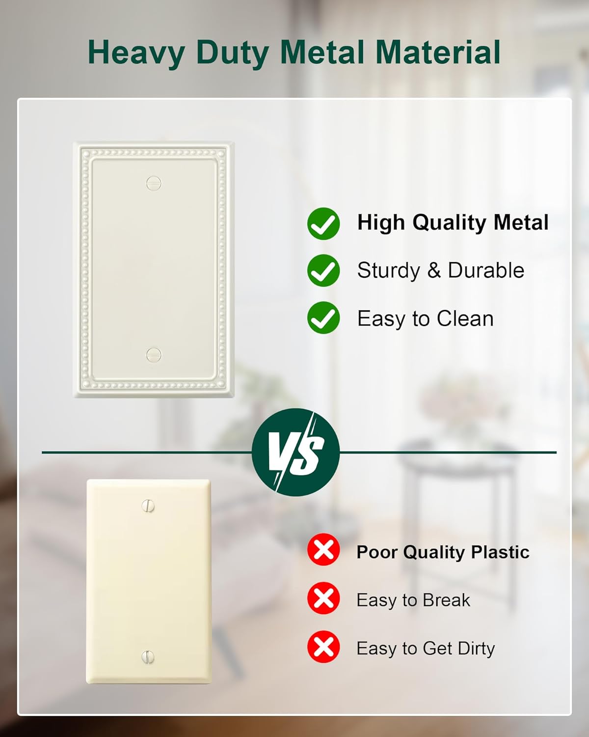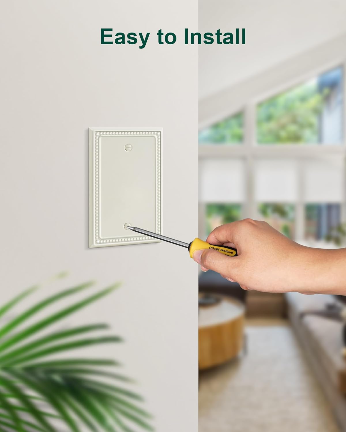 • Elegant Light Almond Finish - The blank outlet cover features a soothing light almond finish, not as dark or yellow as ivory, offering a warmer tone than stark white. This elegant finish adds a fresh appeal to your room and seamlessly blends with any interior style, enhancing the overall aesthetic of your home decor.