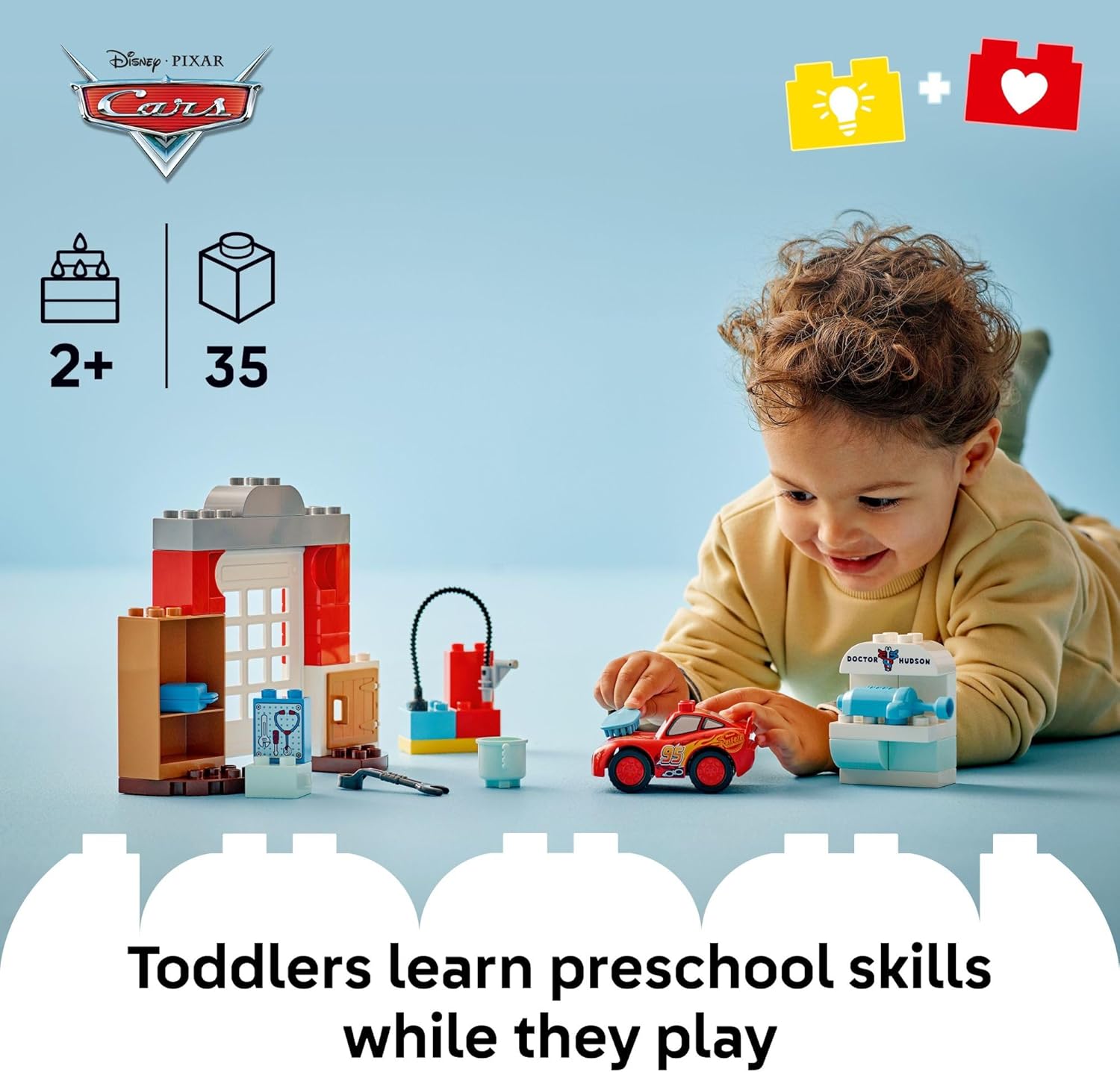 • FIX CARS IN DOC'S GARAGE – Preschoolers play at being a mechanic with the LEGO DUPLO Disney and Pixar Cars McQueen’s Visit to Doc’s Garage buildable toddler toy