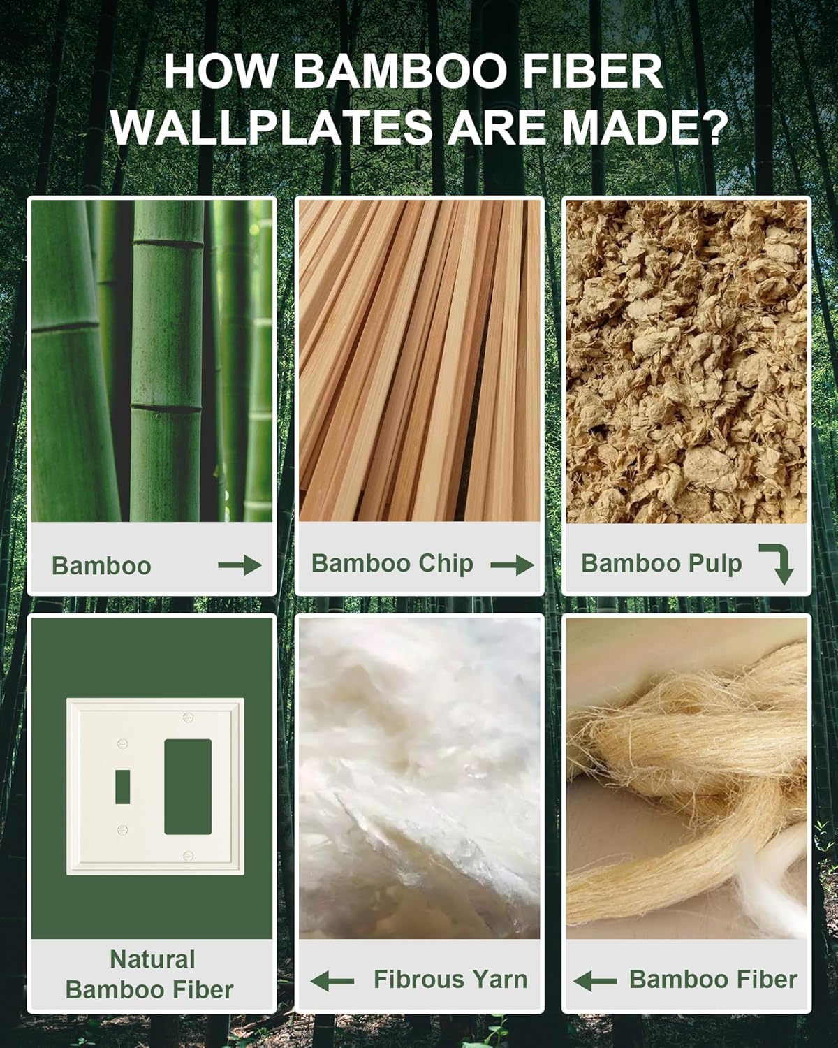 2-Pack Combo Toggle/Decorator Light Switch Cover Plate, Light Almond Modern Decorative Electrical Outlet Covers, Bamboo Fiber Wall Switch Plates and Outlet Covers