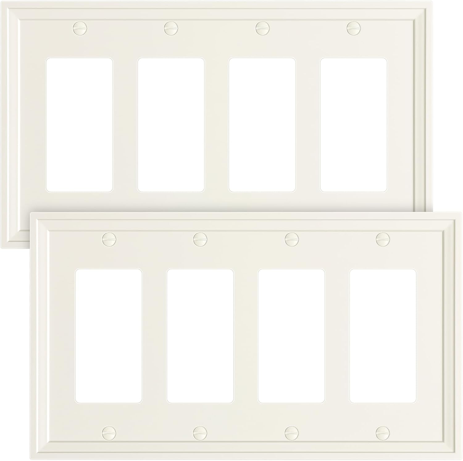 • Specification - Pack of 2 quad decorator wall plates, size at 8.35''W*4.92''H. Easy replacement of any wall plate with the same configuration, making it a convenient choice for remodeling or upgrading your home. Backed by a one-year warranty for your peace of mind and satisfaction.