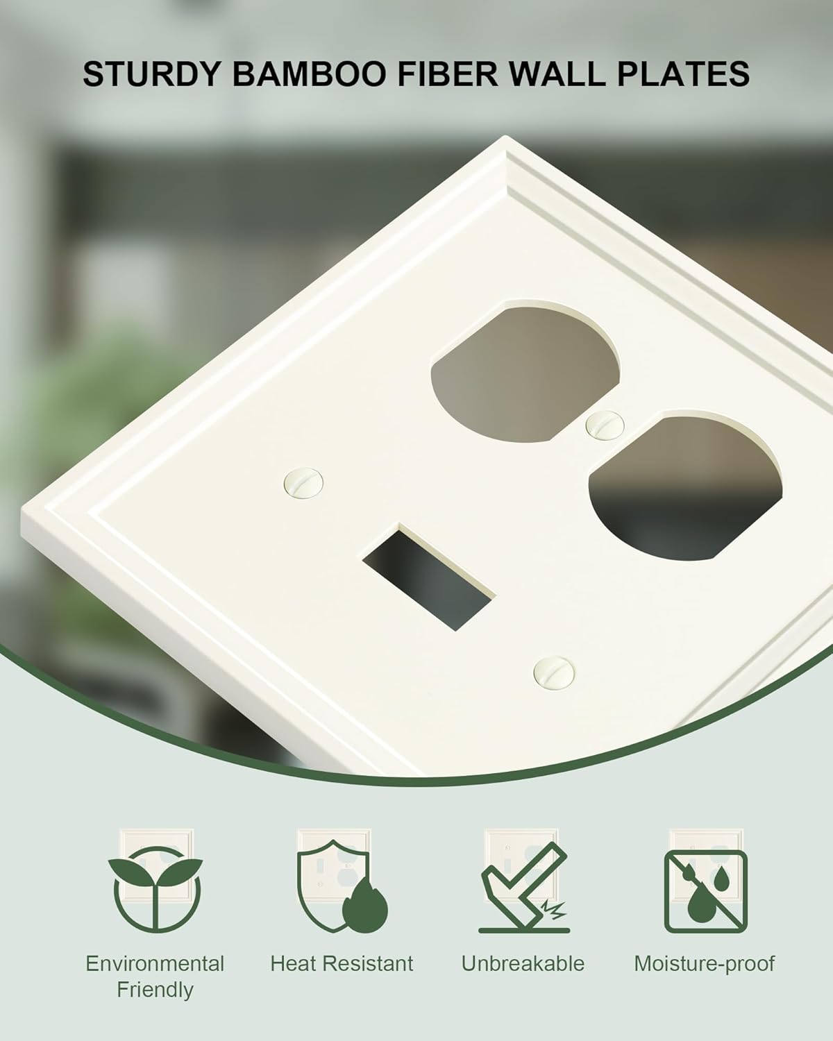 2-Pack Combo Toggle/Duplex Light Switch Cover Plate, Light Almond Wall Outlet Cover Plate, Natural Bamboo Fiber Decorative Wall Receptacle Cover for Electrical Outlets, Light Switch