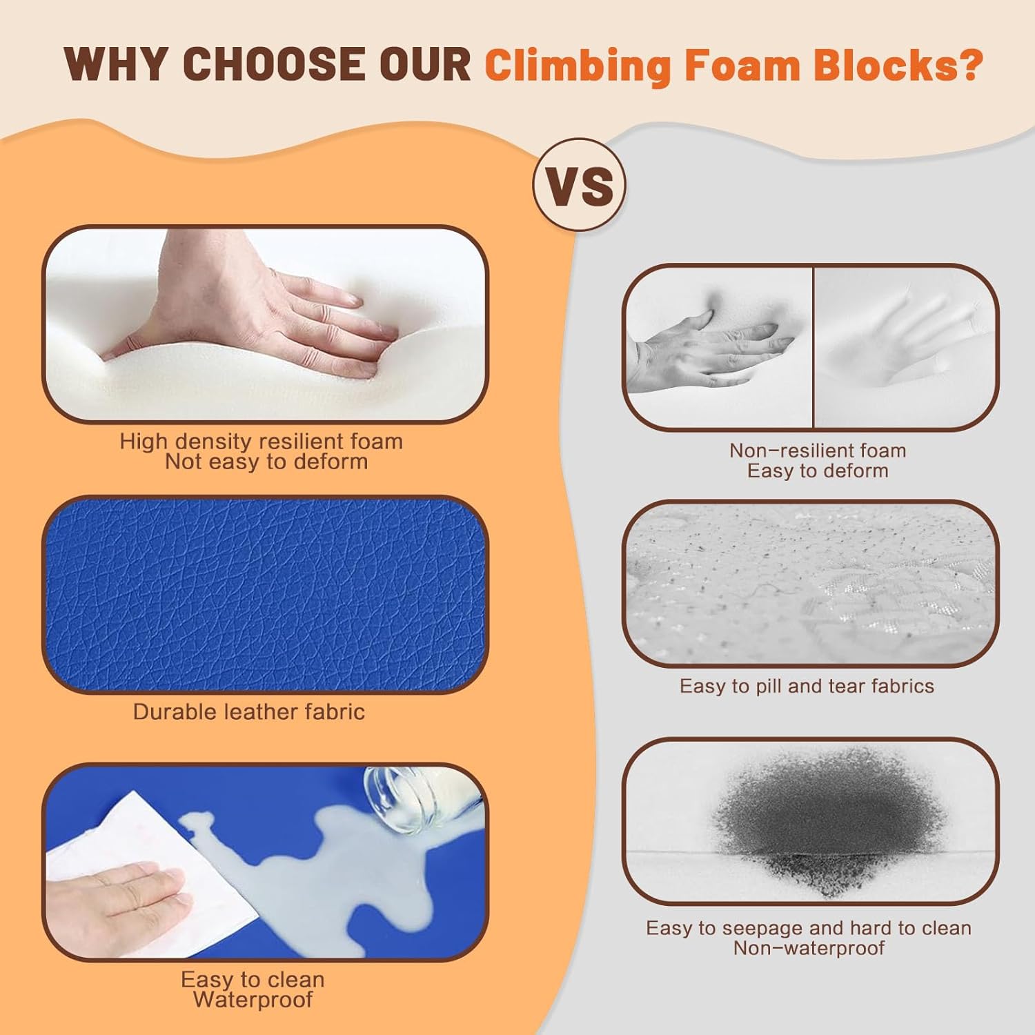• Durable and High Quality: This foam climbing block for toddlers 3 years old is made of high quality soft foam and soft PU leather, durable and very easy to clean and maintain. Your child can safely toddle and roll on the toddler climbing toy that is both soft and supportive. This is a foam climbing blocks that parents can use for their babies with confidence