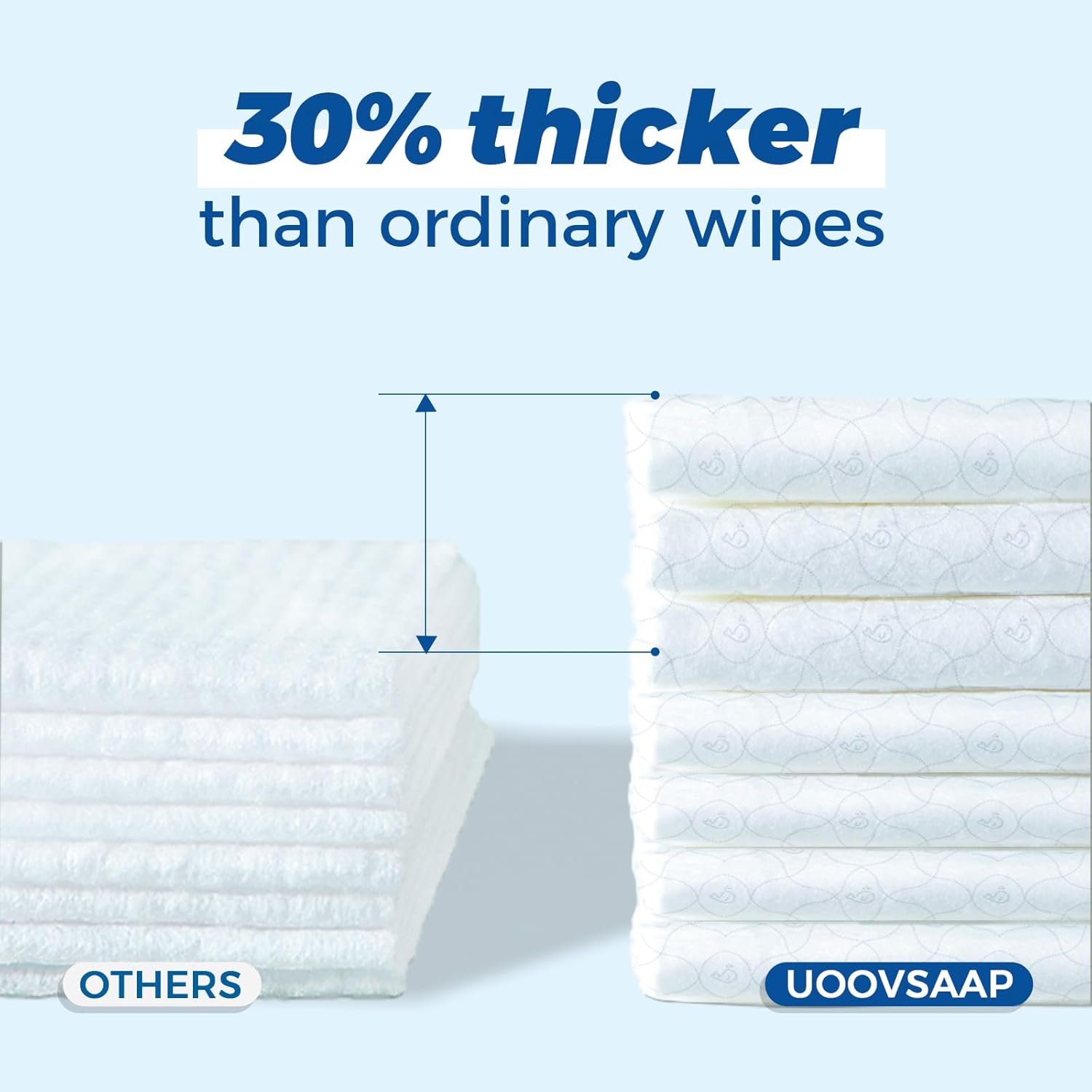 • [Extra Large & Ultra Thick - 1 Wipe Does the Job of 3] 30% Larger (8" x 6") & 50% Thicker than regular baby wipes - Our premium quilted texture provides complete coverage for messy cleanups while being gentle enough for newborn skin. No more using multiple wipes for one diaper change!