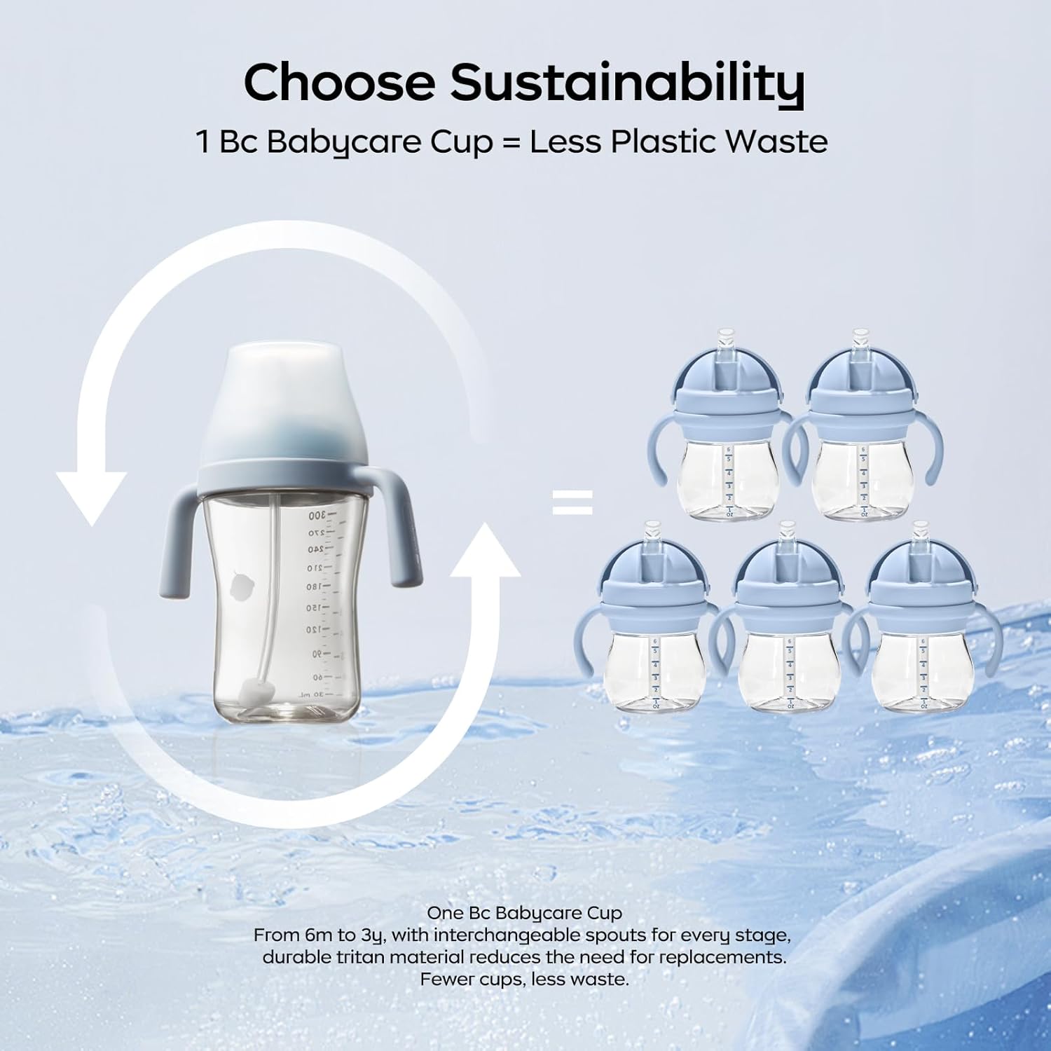 bc babycare Sippy Cup Learner for 6+ Month Old with Nipples & Handles, Spill Proof Sippy Cup, Weighted Straw Toddler Cups, Anti-Choking Baby Cups 1 Pack,Beige