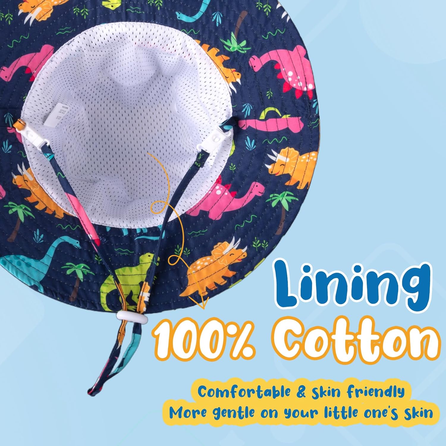 • GREAT SUN PROTECTION: The toddler sun hat features highest rated UPF 50+ sun protection,which blocks up to 98% of UVA and UVB Rays! Its 3" wide brim is enough wide to protect kid's face, ears, eyes, neck from strong sunlight, which allows your kids to have more play time in the hot ourdoor