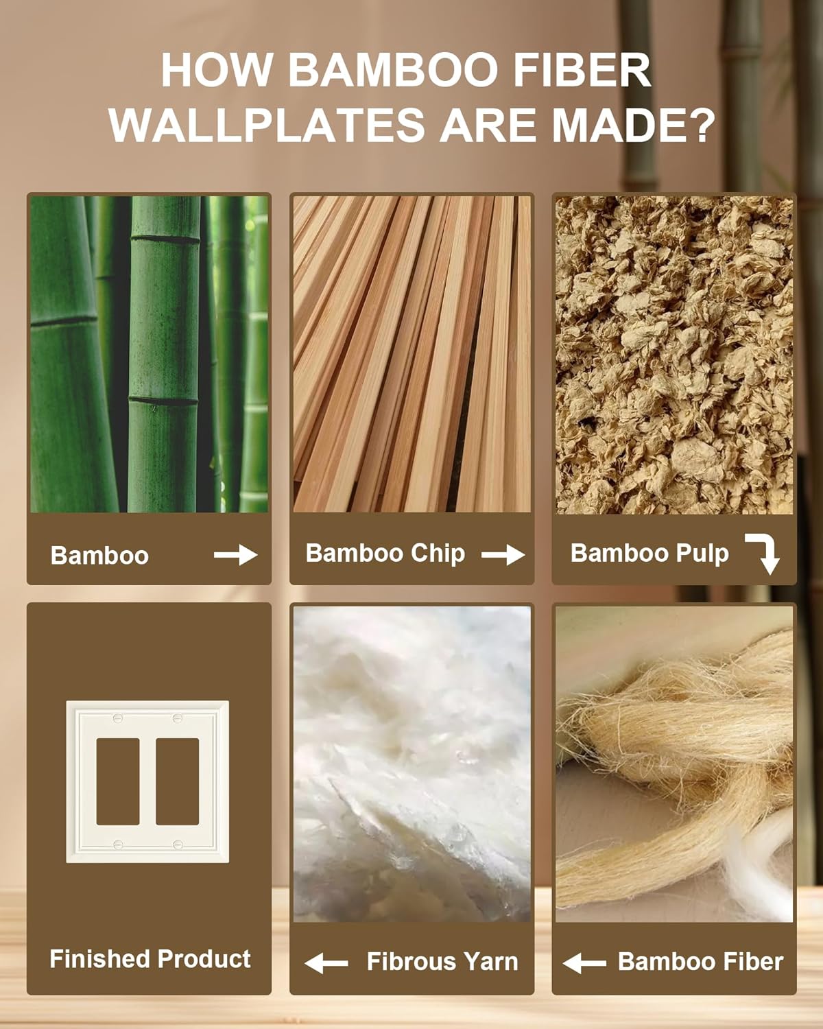 • Natural Bamboo Fiber Material - The wall plate covers are made from sustainable and environmentally friendly bamboo fiber, much thicker and more robust than plastic covers, easier to clean. Resistant to heat, moisture, and corrosion, ensuring it remain a stunning addition to your home for years to come.