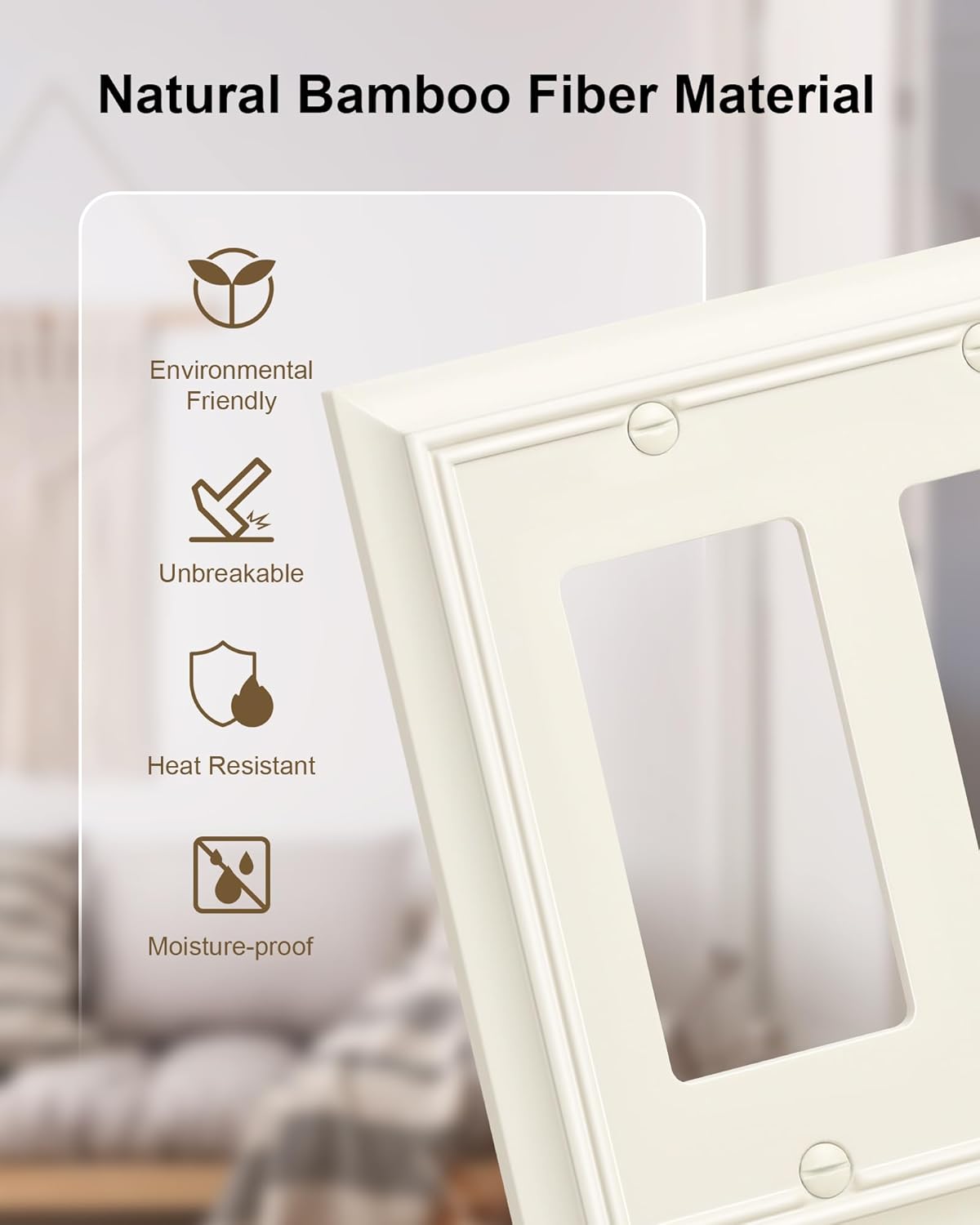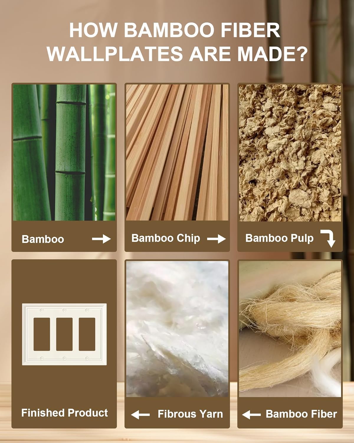 • Natural Bamboo Fiber Material - The wall plate covers are made from sustainable and environmentally friendly bamboo fiber, much thicker and more robust than plastic covers, easier to clean. Resistant to heat, moisture, and corrosion, ensuring it remain a stunning addition to your home for years to come.