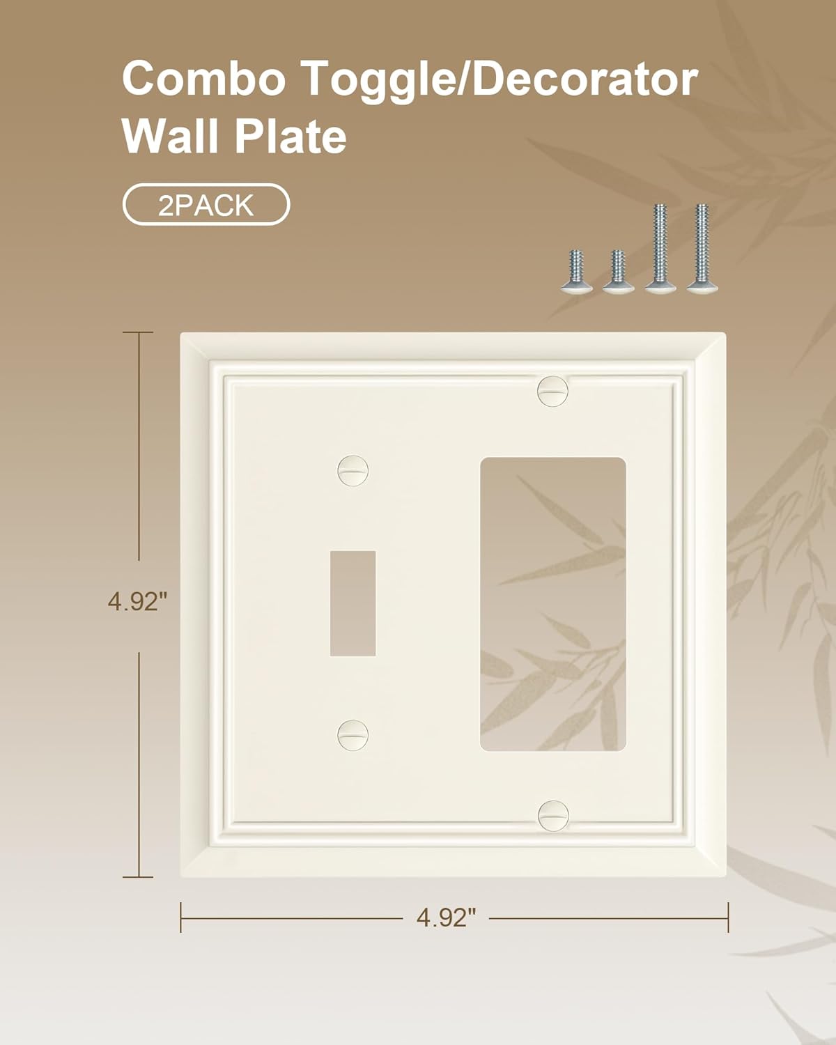 2-Pack Combo Toggle/Decorator Light Switch Cover Plate, Light Almond Decorative Electrical Outlet Covers, Durable Natural Bamboo Fiber Switch Plates and Outlet Covers, Corrosion Resistant