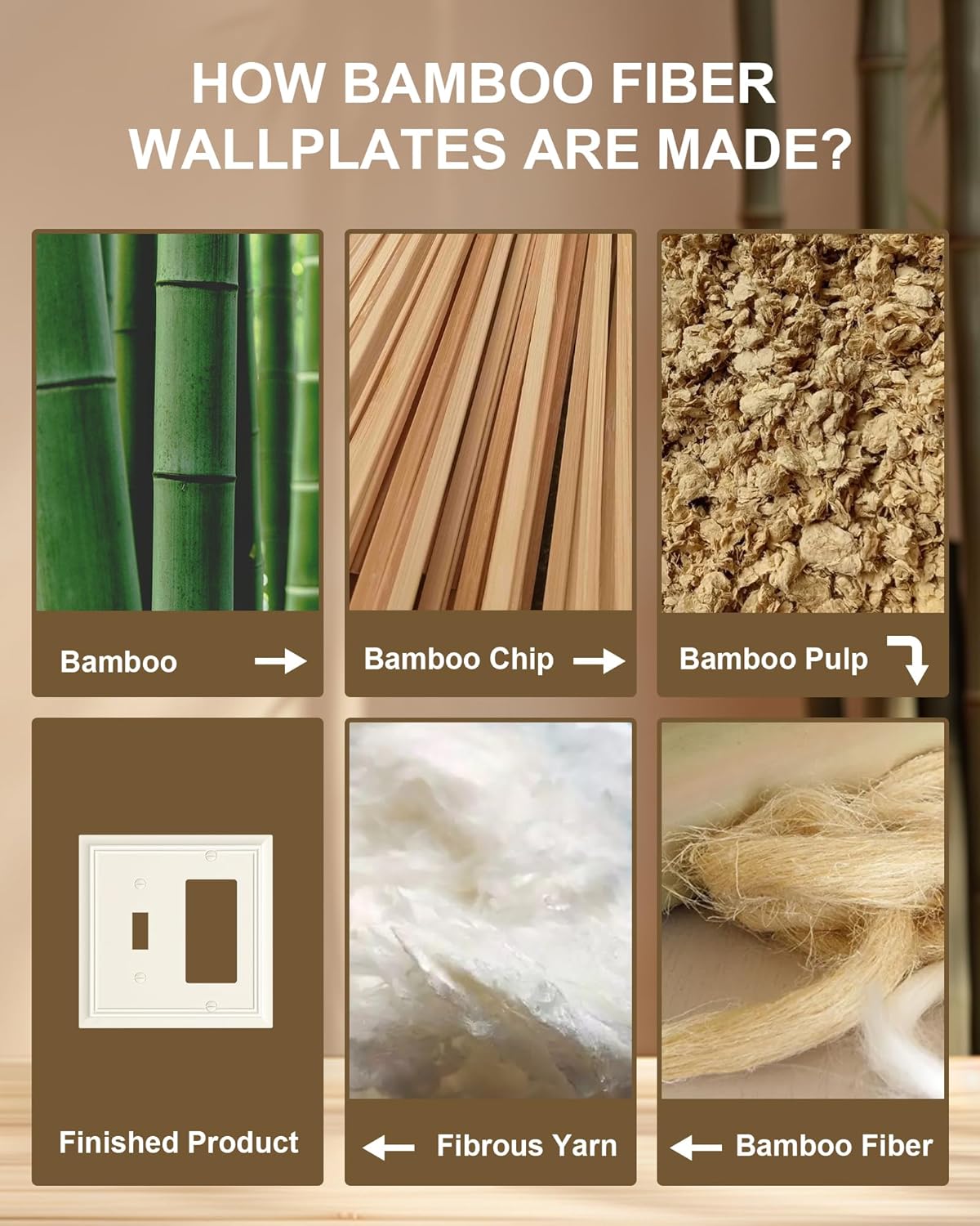 • Natural Bamboo Fiber Material - The Combo Toggle/Decorator switch plate covers are made from sustainable and environmentally friendly bamboo fiber, much thicker and more robust than plastic covers, easier to clean. Resistant to heat, moisture, and corrosion, ensuring it remain a stunning addition to your home for years to come.