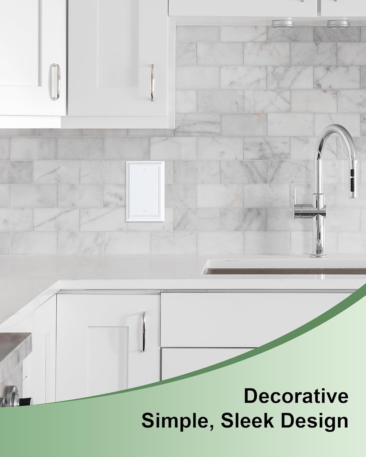 • Elevate Your Decor - Beautifully crafted with simple, clean lines and a classic pure white finish, our blank wall plate cover seamlessly blends into any interior style. Its timeless design adds a touch of elegance and sophistication to your home decor.