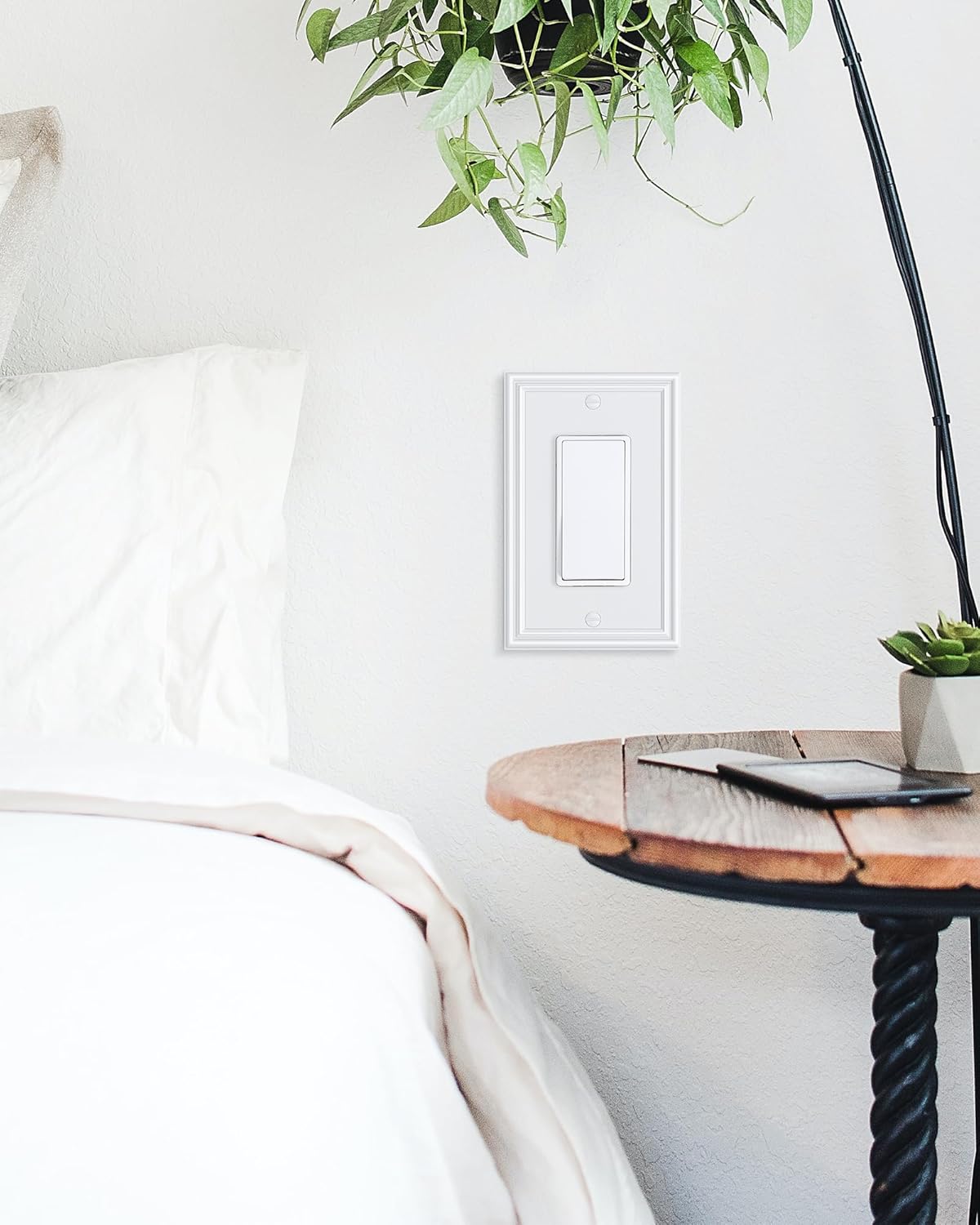• Wide Application - Versatile and easy to match, These pure white wall plates are compatible with Decorator Outlet Receptacle, Roker Switch, Dimmer Switch, GFCI Outlets. Complements any interior style, whether your decor is modern, traditional, or contemporary, this decorative switch plate cover seamlessly blends in and glams up your wall.