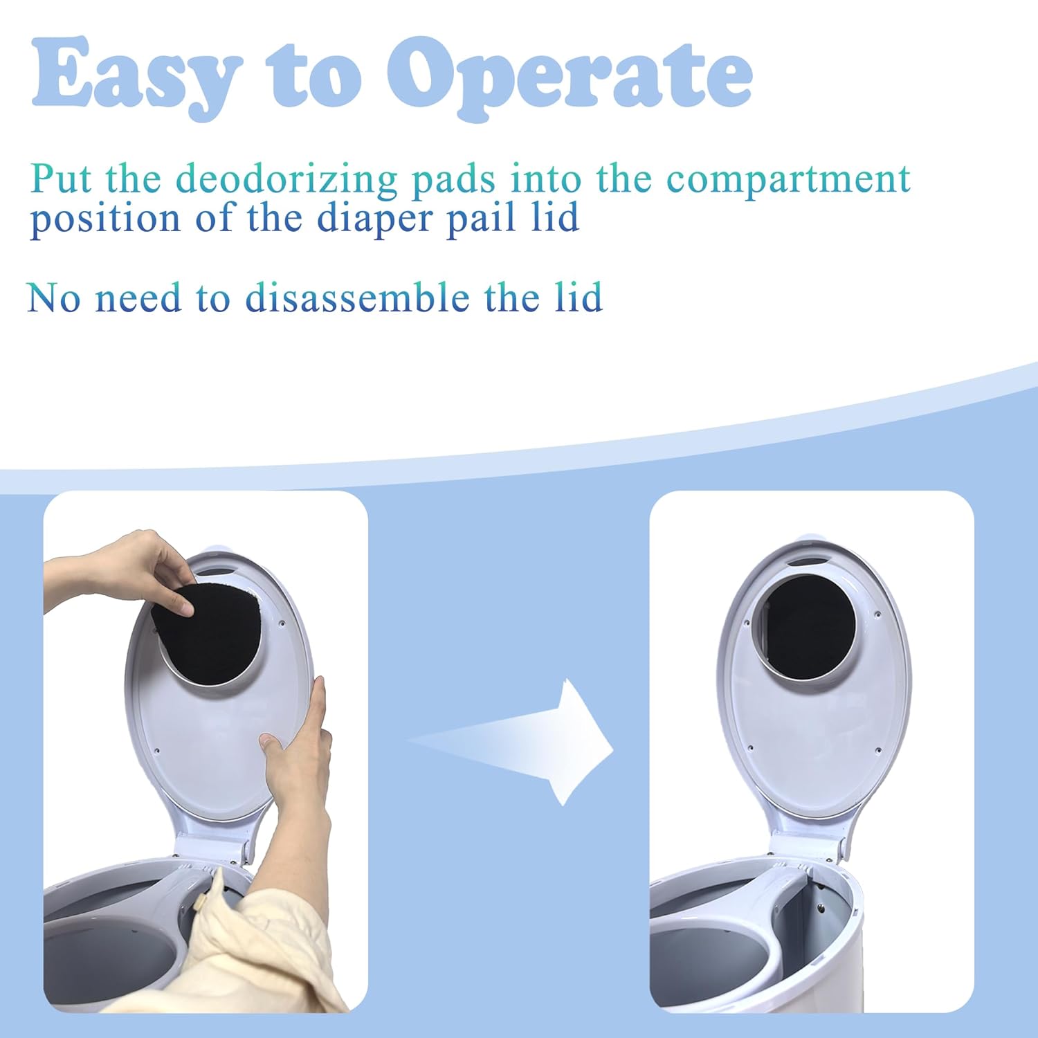 • EASY TO OPERATE: Just put the deodorizing pads into the compartment position of the diaper pail lid, no need to disassemble the lid, saving more effort