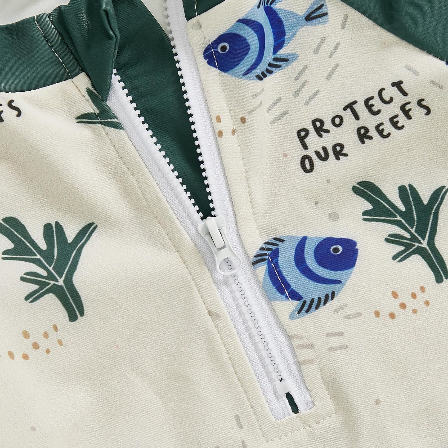 • Design: Toddler bathing suit boy, infant long sleeve swimsuit boy, round neck, back/front zipper closure for easy on and off, newborn swimsuit boy, dinosaur/marine animal print, super cute and lovely, your little boy will stand out in the crowd