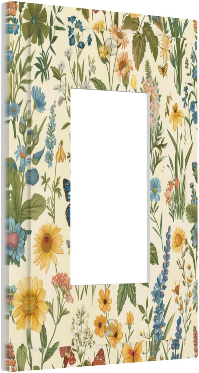 Decorative Outlet Covers Rustic Plant Garden Leaf Flower Butterfly 1 Gang Single Decora GFCI Device Light Switch Covers Plate 1 Rocker Wall Plate Jumbo Faceplate for Bedroom Home Decor