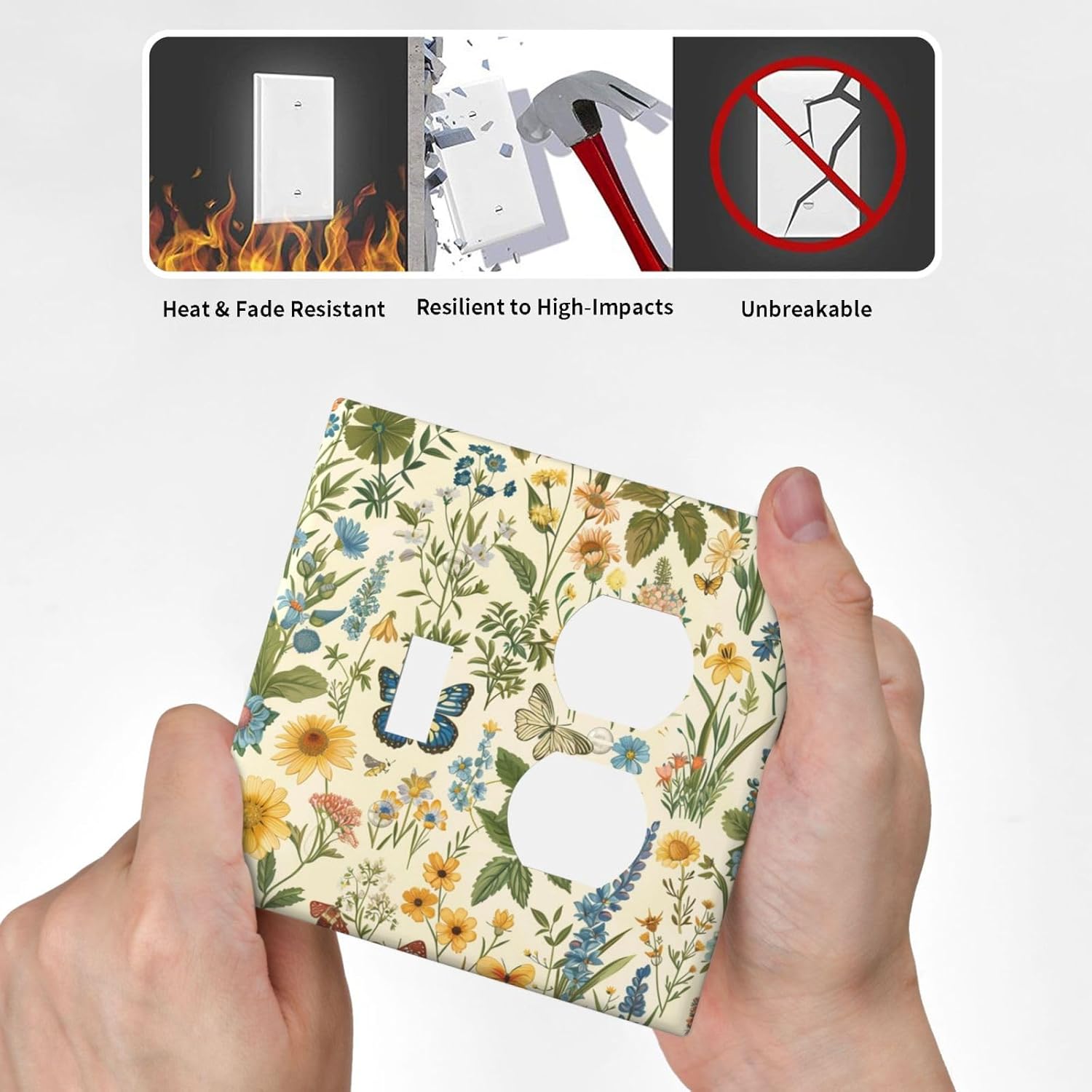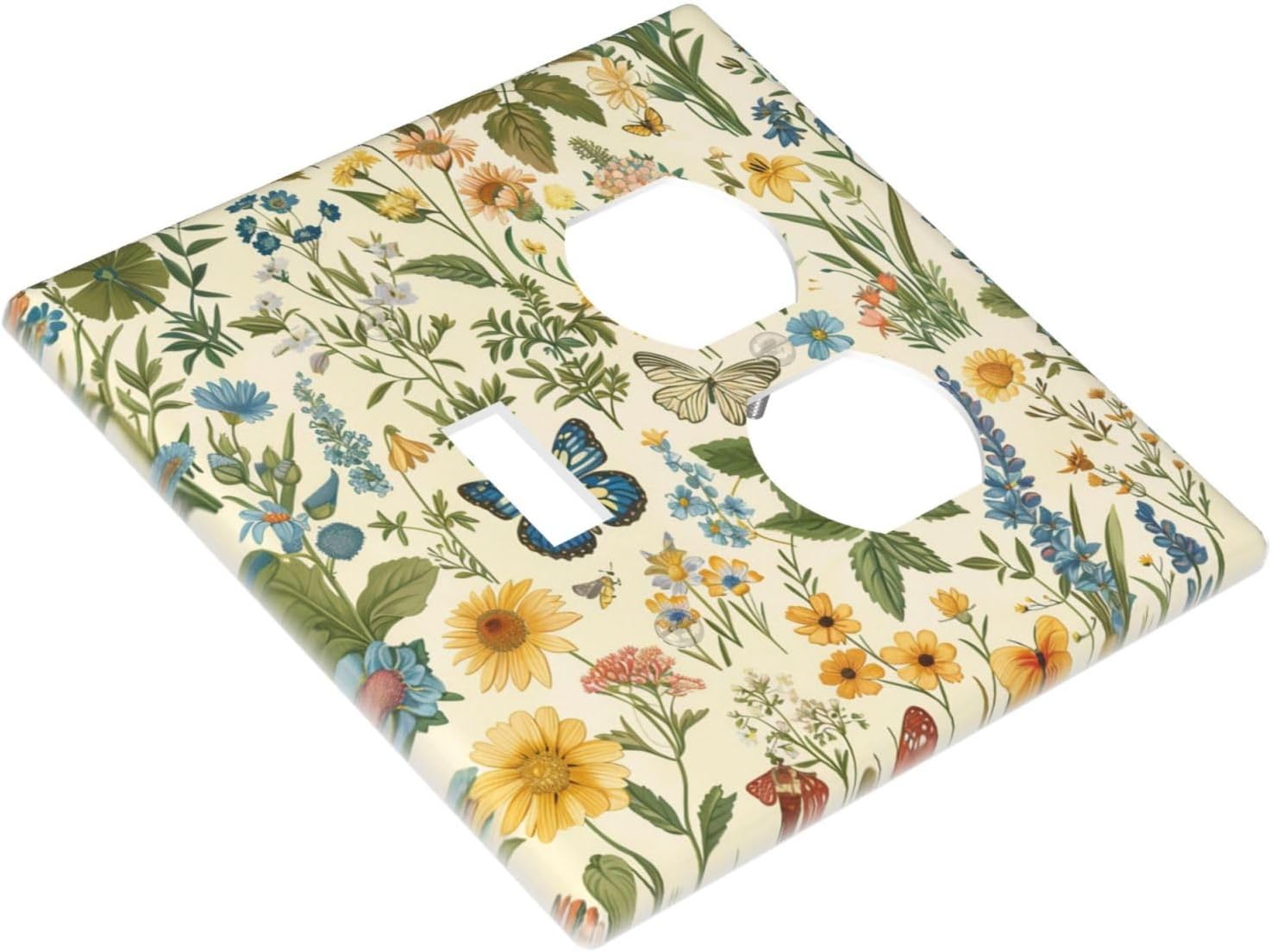 Decorative Outlet Covers Rustic Plant Garden Leaf Flower Butterfly 2 Gang Wall Plate Cover Single Toggle Duplex Combo Two Switch Light Switch Cover Plate Jumbo Dual GFCI Faceplate