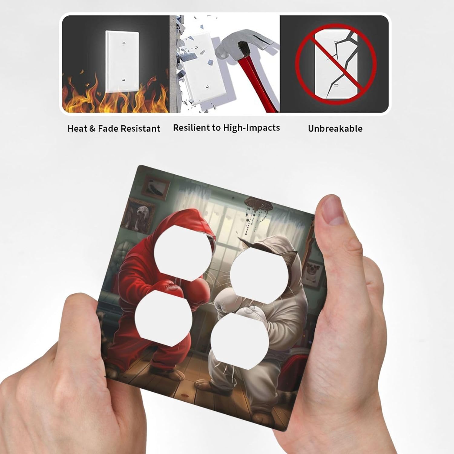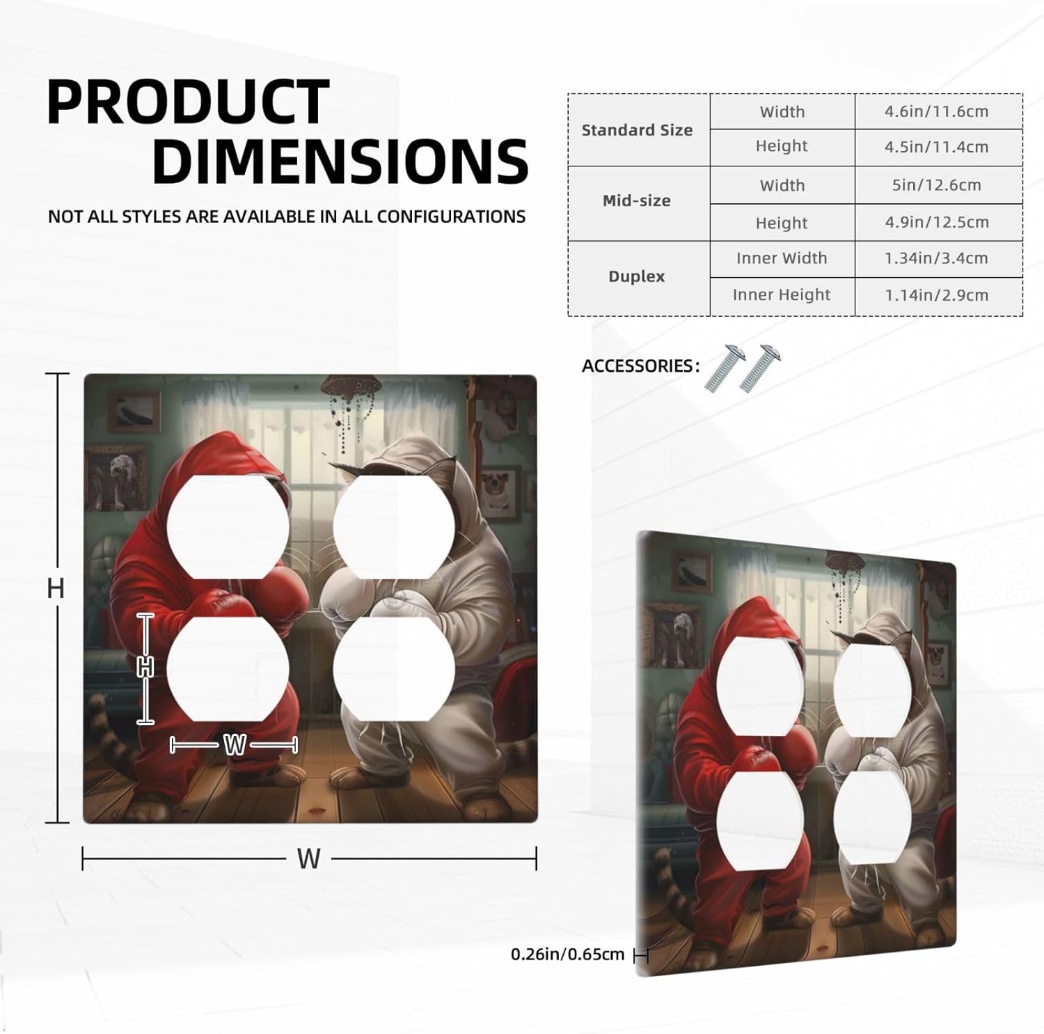 Decorative Outlet Covers Funny Red Boxing Cats White Tomcat 2 Gang Wall Plate Cover Double Duplex Receptacle Two Switch Light Switch Cover Plate Jumbo Dual Faceplate for Home Decor