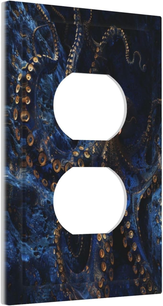 Decorative Outlet Covers Horror Night Blue Ocean Evil Octopus 1 Gang Duplex Light Switch Cover Plate Wall Plates for Electrical Outlets Switchplate Faceplate for Bathroom Home Decor