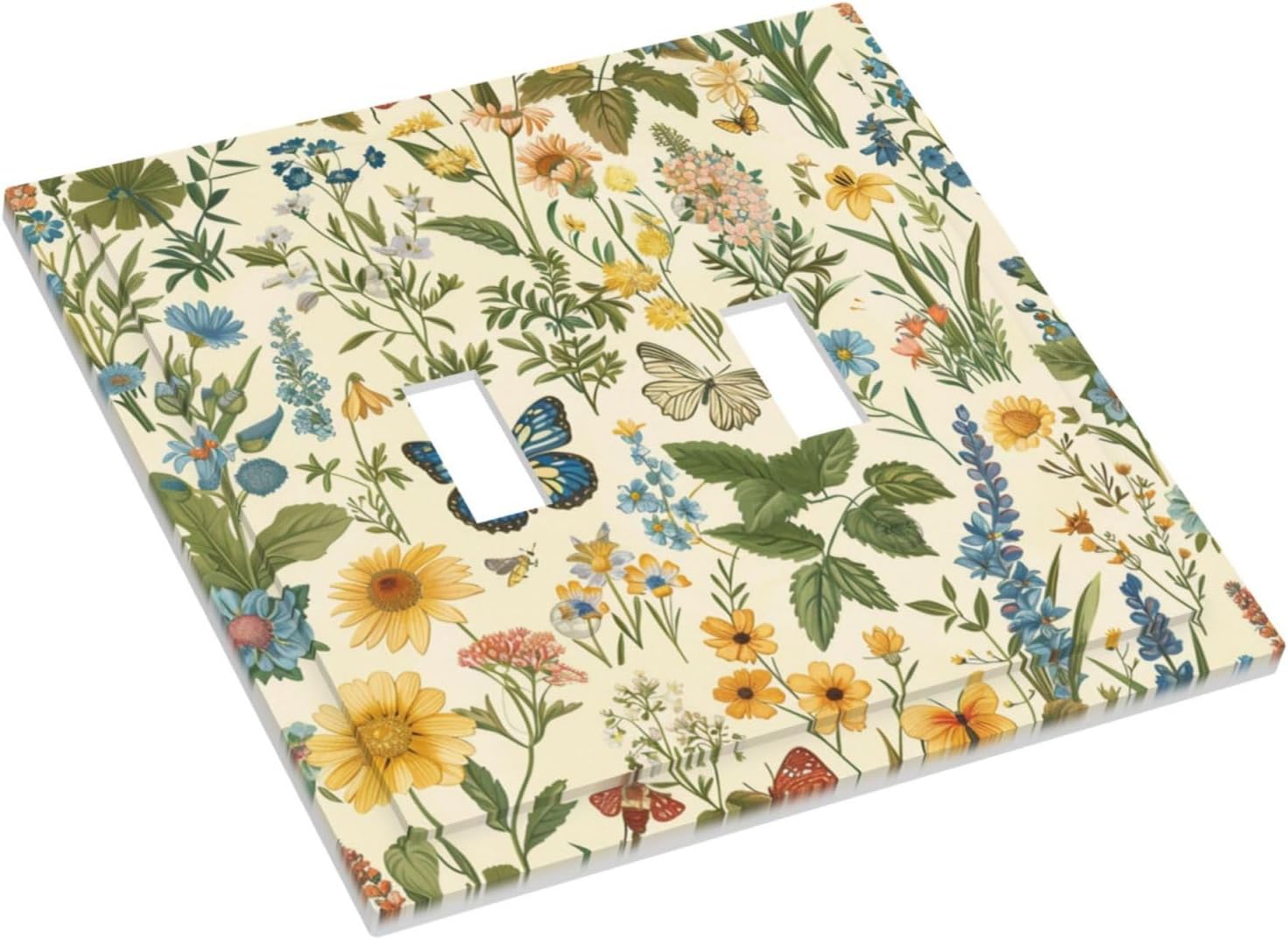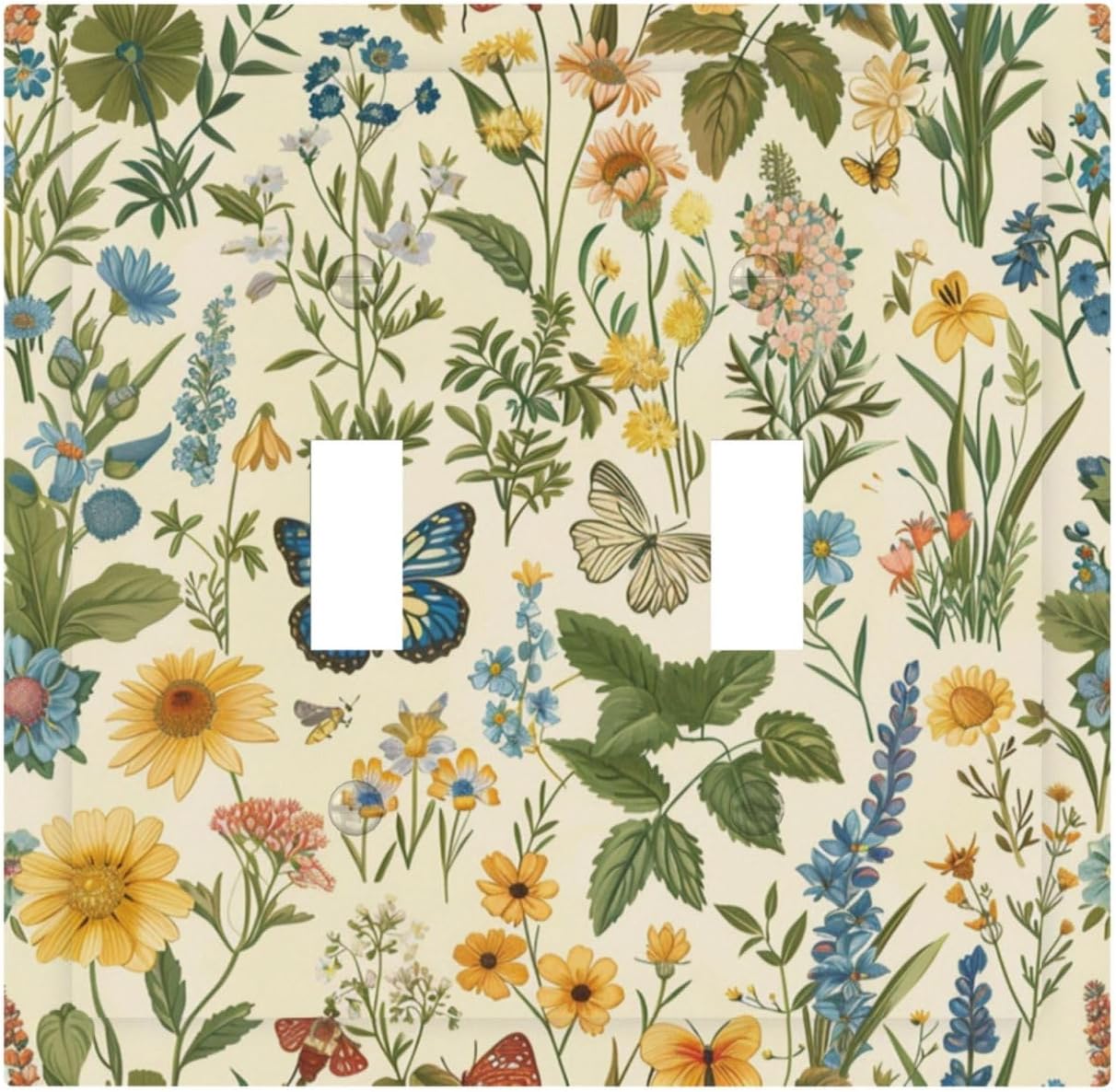 Decorative Switch Covers Plate Rustic Plant Garden Leaf Flower Butterfly 2 Gang Wall Plate Unique Double Toggle Light Switch Plate Wall Cover Plate Faceplate for Bedroom Home Decor