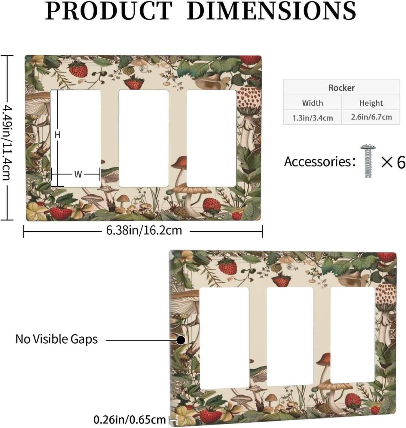 Decorative Outlet Covers Rustic Mushroom Garden Red Strawberry 3 Gang Wall Plate Triple Rocker Light Switch Cover Plate Jumbo Electrical GFCI Faceplate for Bedroom Home Decor
