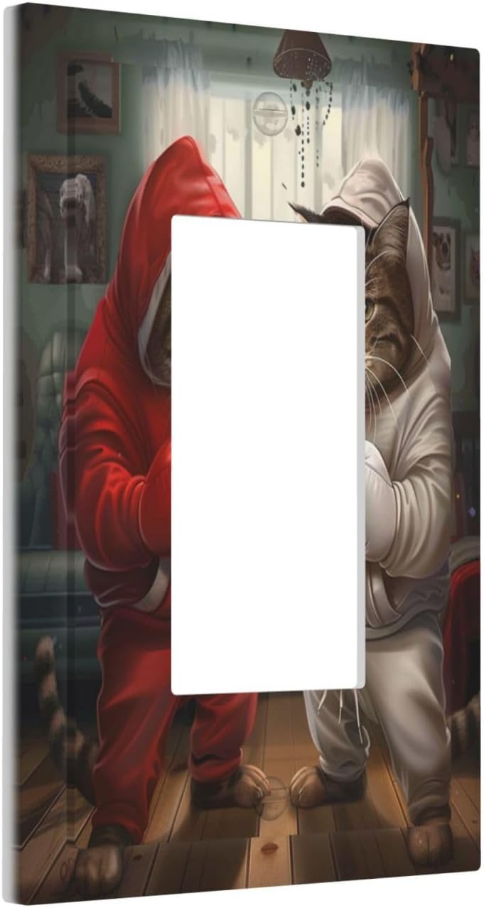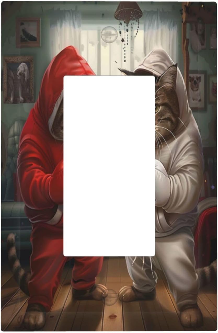 Decorative Outlet Covers Funny Red Boxing Cats White Tomcat 1 Gang Single Decora GFCI Device Light Switch Covers Plate 1 Rocker Wall Plate Jumbo Faceplate for Bedroom Home Decor