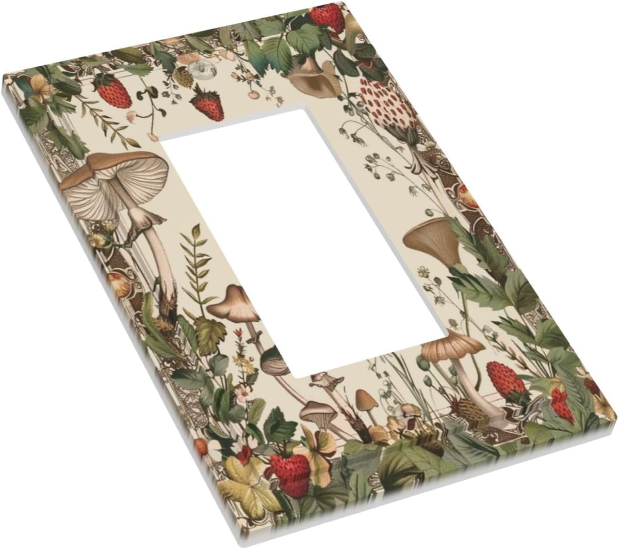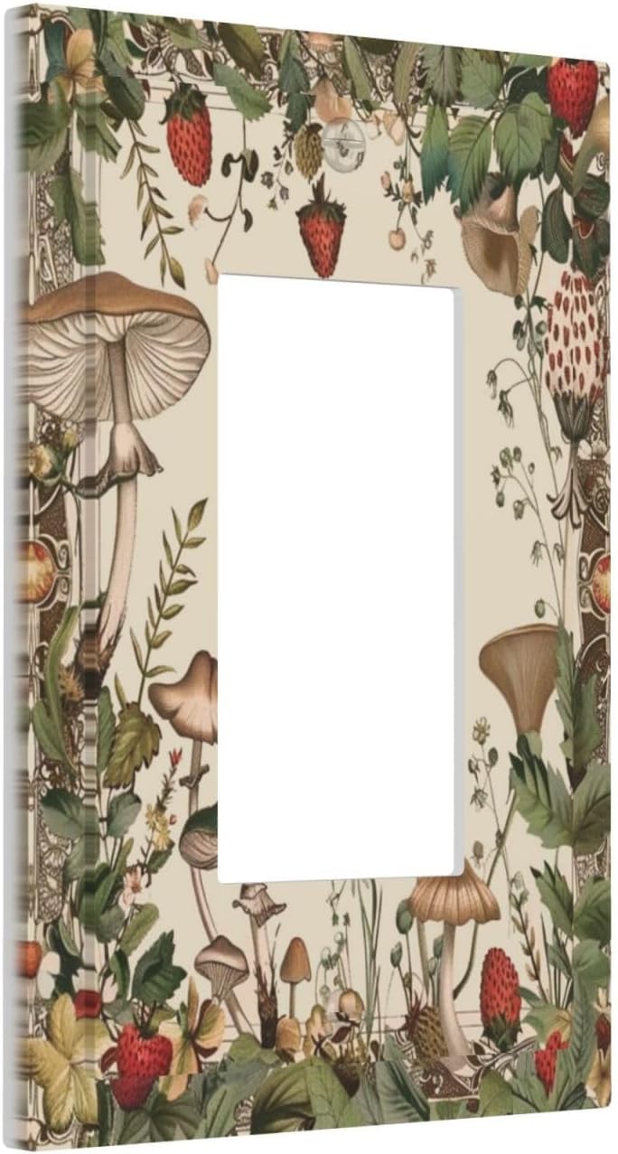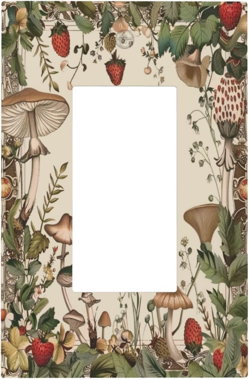 Decorative Outlet Covers Rustic Mushroom Garden Red Strawberry 1 Gang Single Decora GFCI Device Light Switch Covers Plate 1 Rocker Wall Plate Jumbo Faceplate for Bedroom Home Decor
