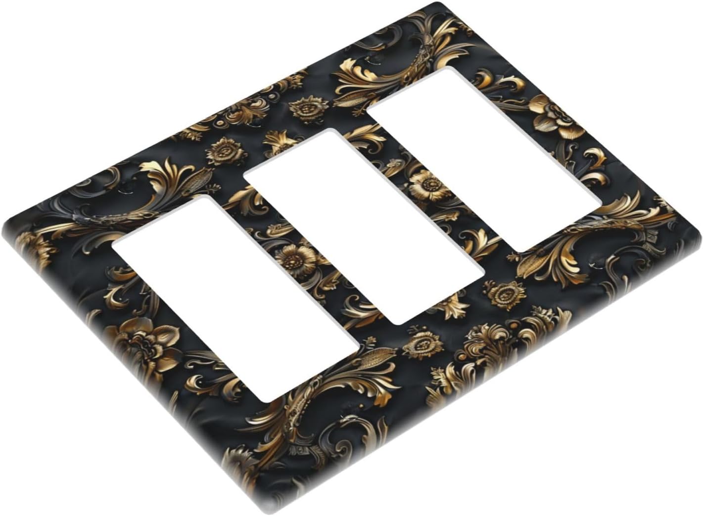 Decorative Outlet Covers Rococo Vintage Black Golden Leaf Morris Vine 3 Gang Wall Plate Triple Rocker Light Switch Cover Plate Jumbo Electrical GFCI Faceplate for Bedroom Home Decor