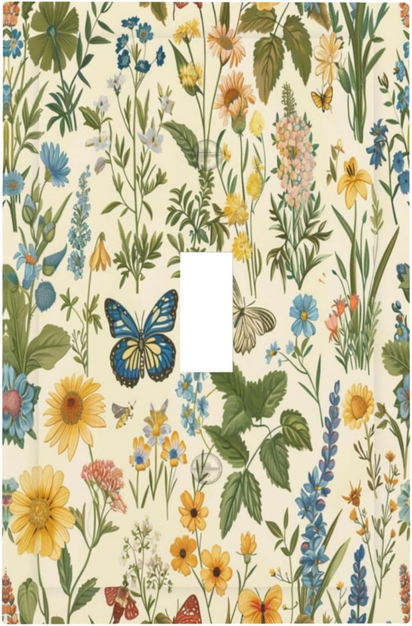 Decorative Switch Covers Plate Rustic Plant Garden Leaf Flower Butterfly 1 Gang Wall Plate Unique Single Toggle Wall Cover Plate Jumbo Electrical Light Switch Plate Faceplate for Home Decor