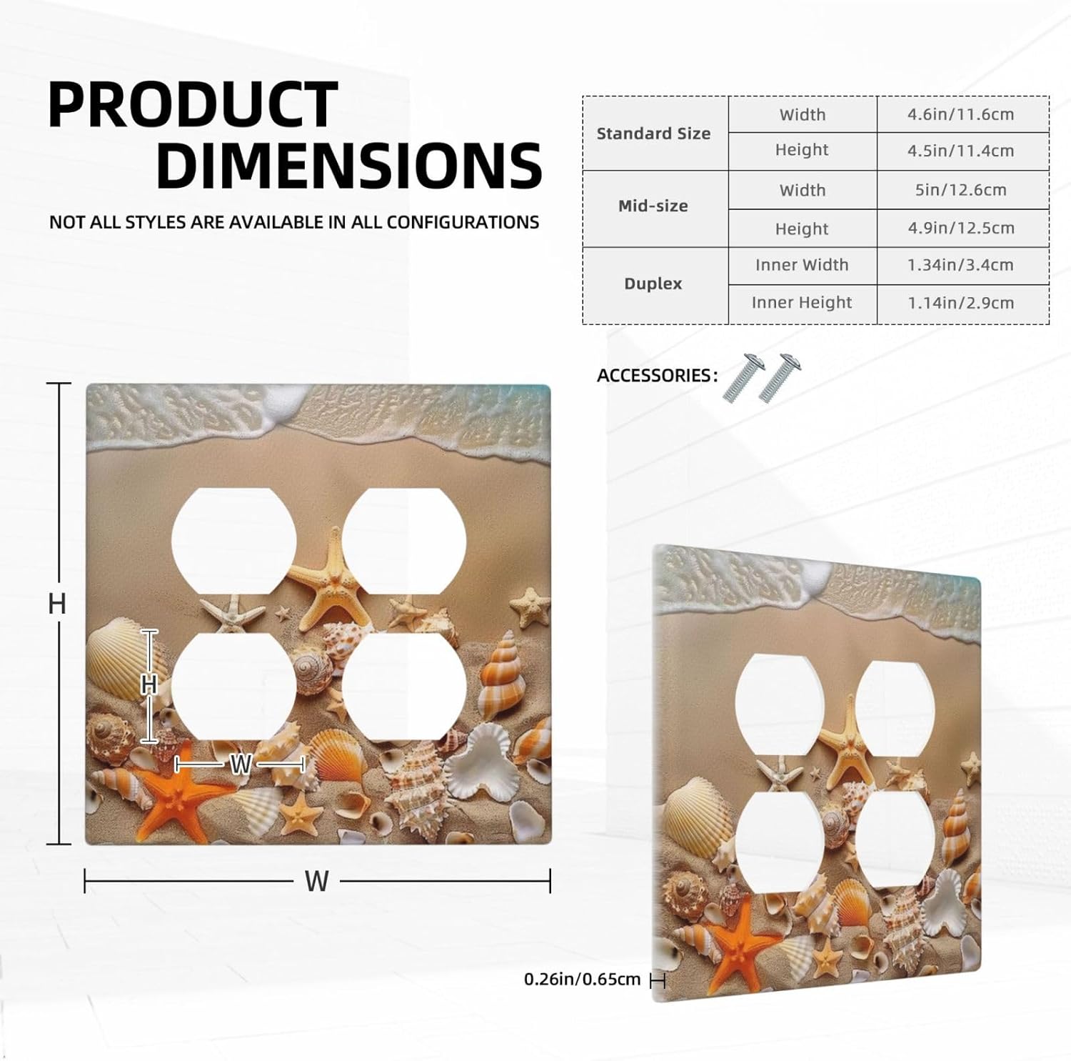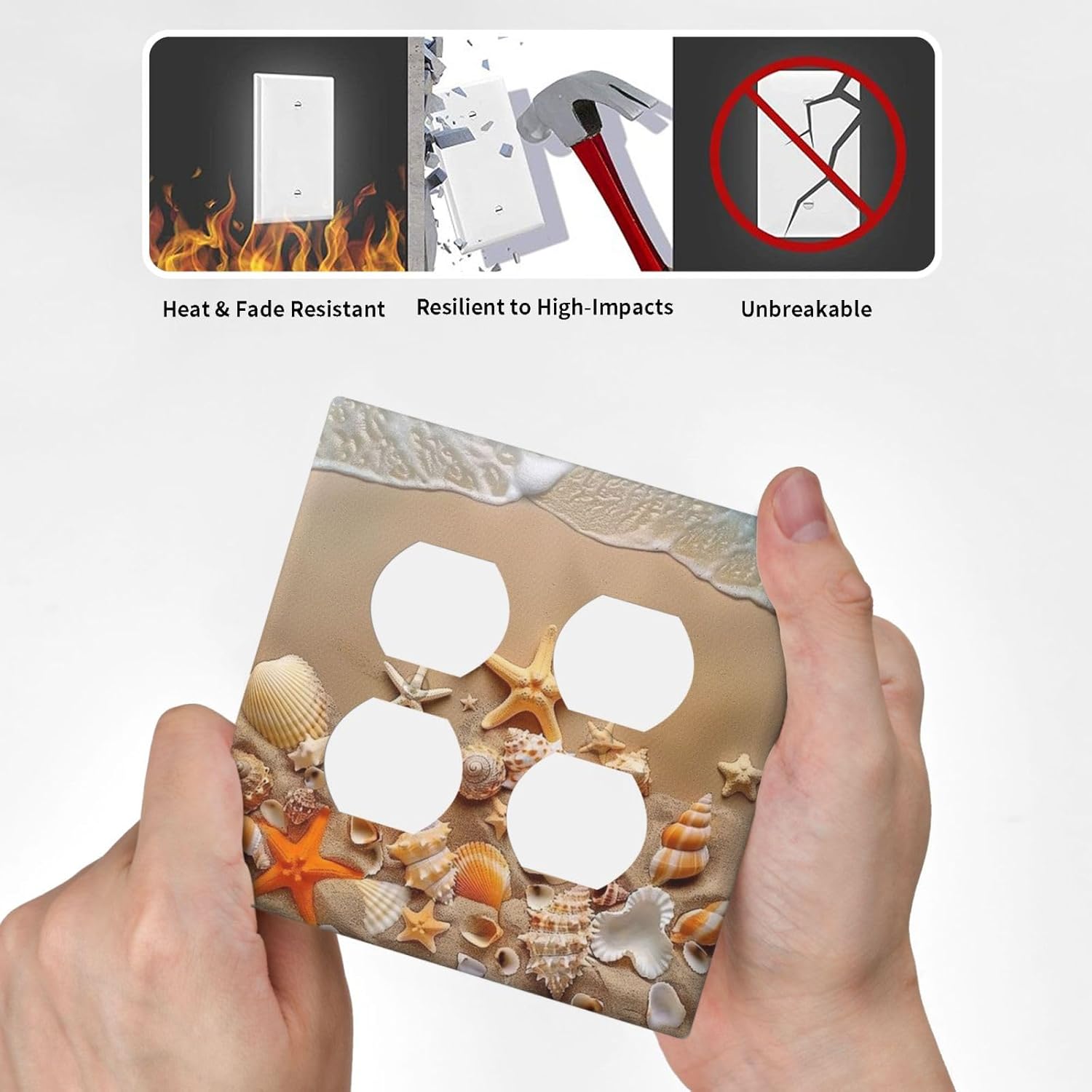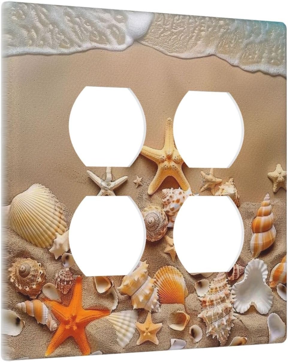 Decorative Outlet Covers Beachy Sea Ocean Seashell Starfish 2 Gang Wall Plate Cover Double Duplex Receptacle Two Switch Light Switch Cover Plate Jumbo Dual Faceplate for Home Decor