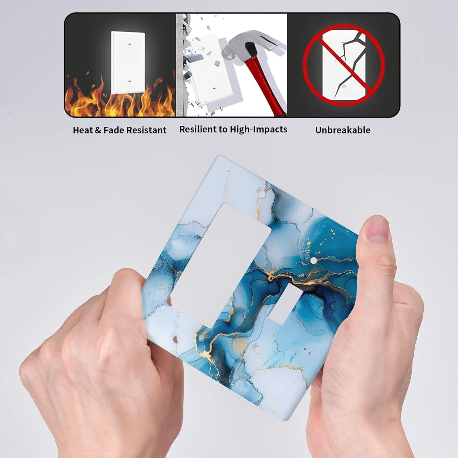 Decorative Outlet Covers Modern Abstract Blue Gold Line Marble 2 Gang 1 Gang Wall Plate Cover Single Toggle Rocker Combo Light Switch Cover Plate Face Plate for Bedroom Home Decor
