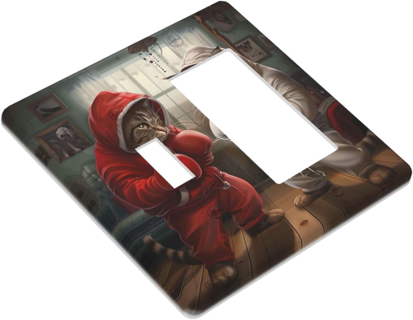 Decorative Outlet Covers Funny Red Boxing Cats White Tomcat 2 Gang 1 Gang Wall Plate Cover Single Toggle Rocker Combo Light Switch Cover Plate Face Plate for Bedroom Home Decor
