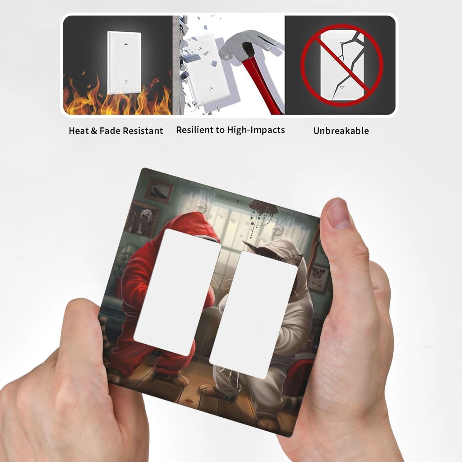 Decorative Outlet Covers Funny Red Boxing Cats White Tomcat 2 Gang Wall Plate Double Rocker Two Switch Wall Cover Plate Light Switch Cover Plate Faceplate for Bedroom Home Decor