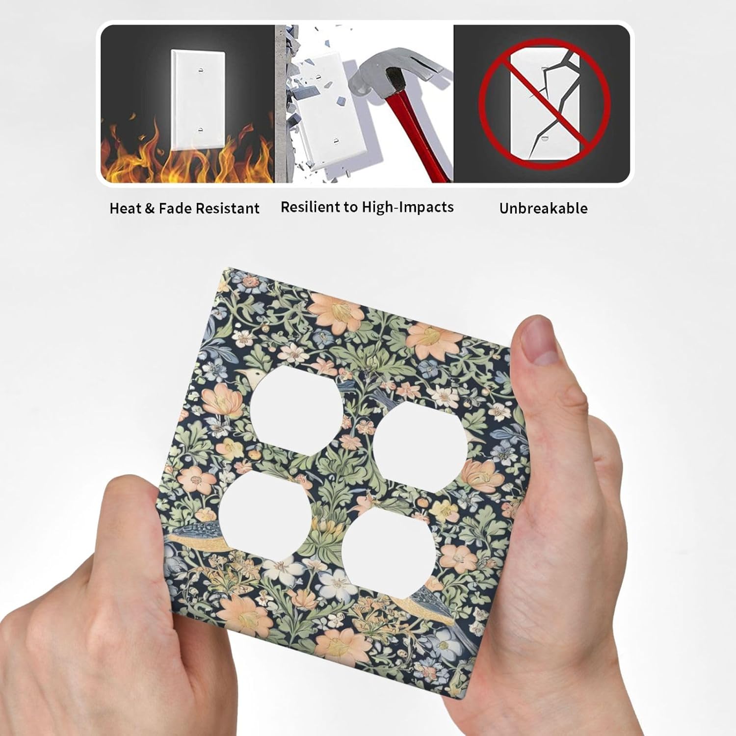 Decorative Outlet Covers Rustic Morris Birds Green Leaf Flower 2 Gang Wall Plate Cover Double Duplex Receptacle Two Switch Light Switch Cover Plate Jumbo Dual Faceplate for Home Decor
