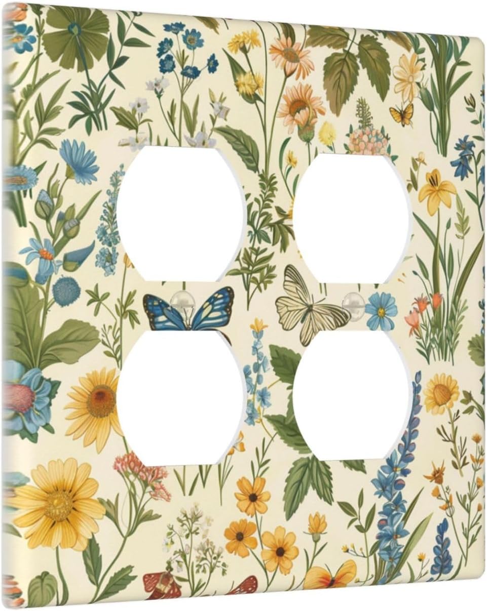 Decorative Outlet Covers Rustic Plant Garden Leaf Flower Butterfly 2 Gang Wall Plate Cover Double Duplex Receptacle Two Switch Light Switch Cover Plate Jumbo Faceplate for Home Decor