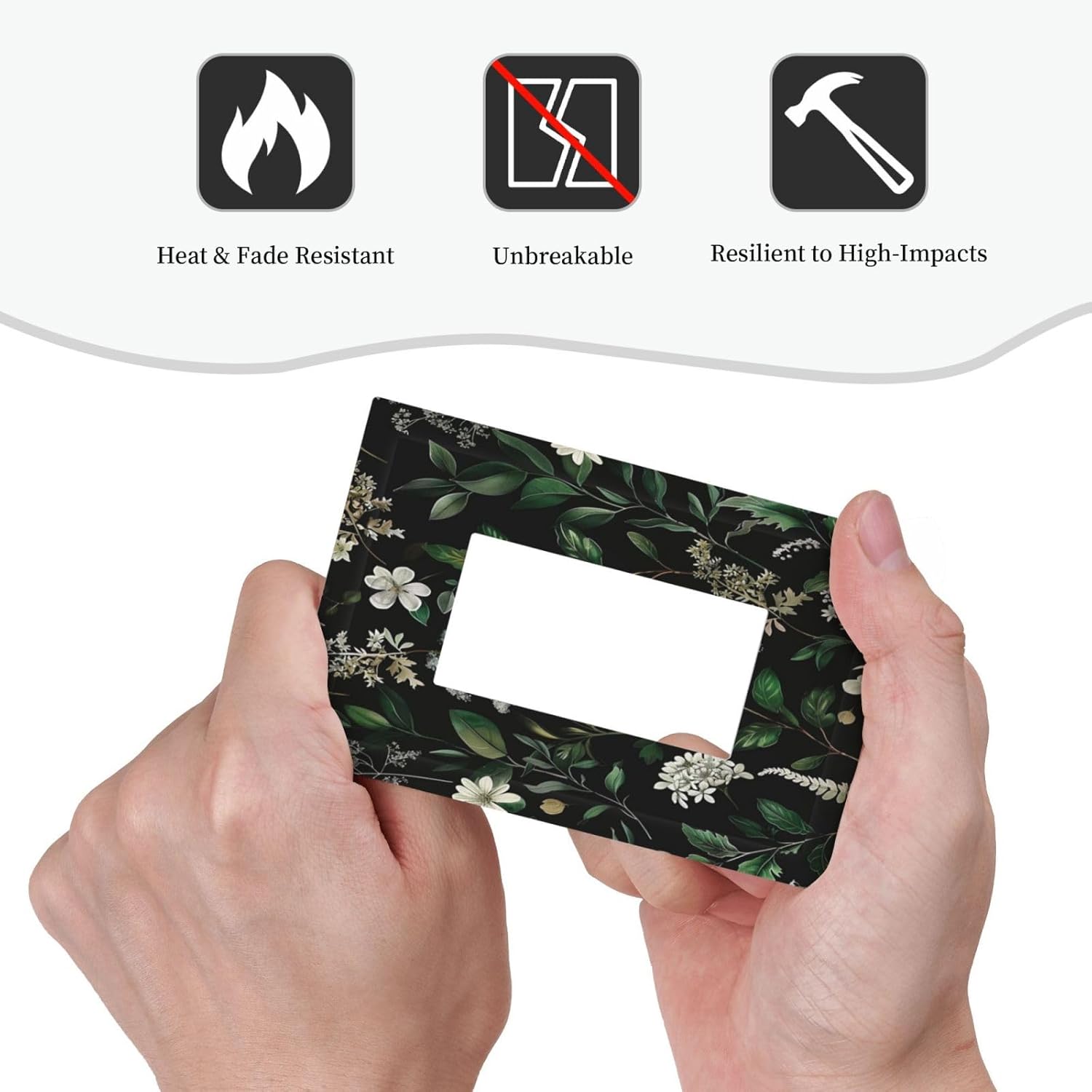 Decorative Outlet Covers Rustic Green Leaves White Flower 1 Gang Single Decora GFCI Device Light Switch Covers Plate 1 Rocker Wall Plate Jumbo Faceplate for Country Bedroom Home Decor